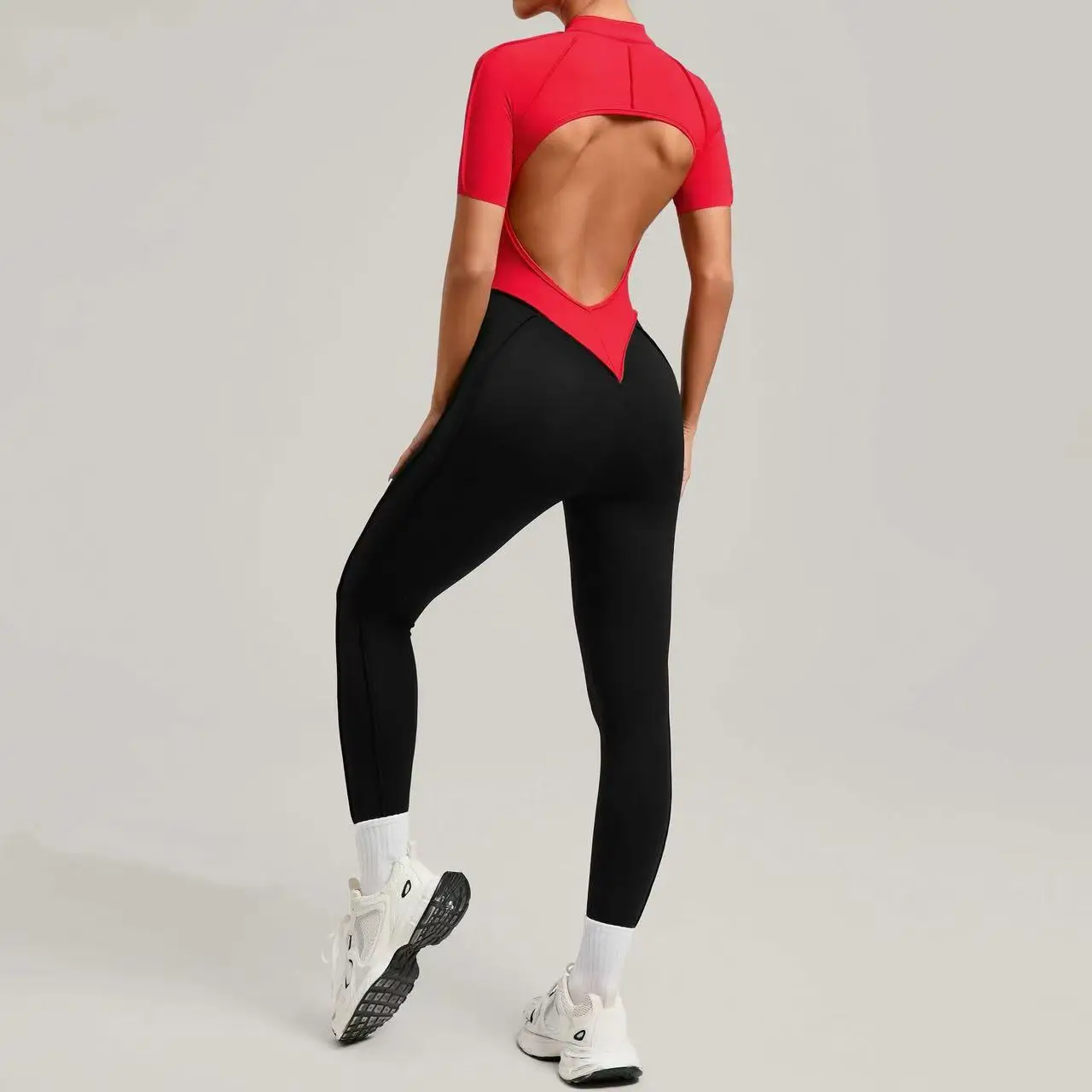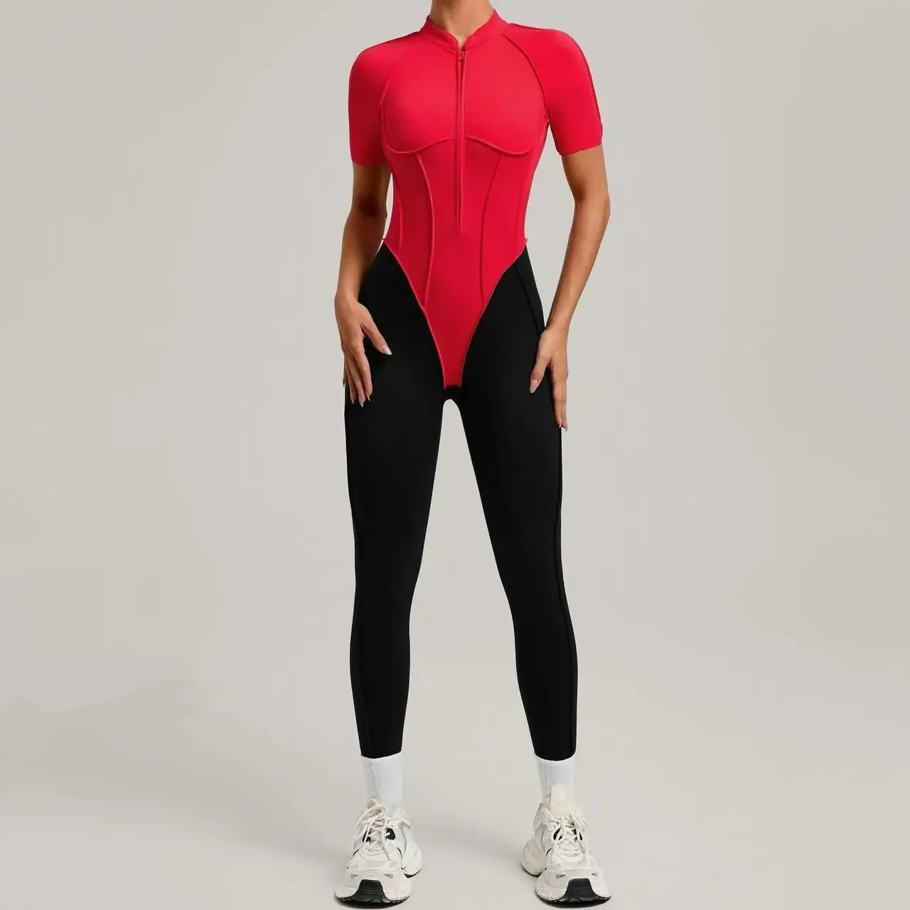 Custom Wholesale Cheap Fitness Red One-piece Suit Girls Tight-fitting Running Gym Wear for Women Yoga Jumpsuits