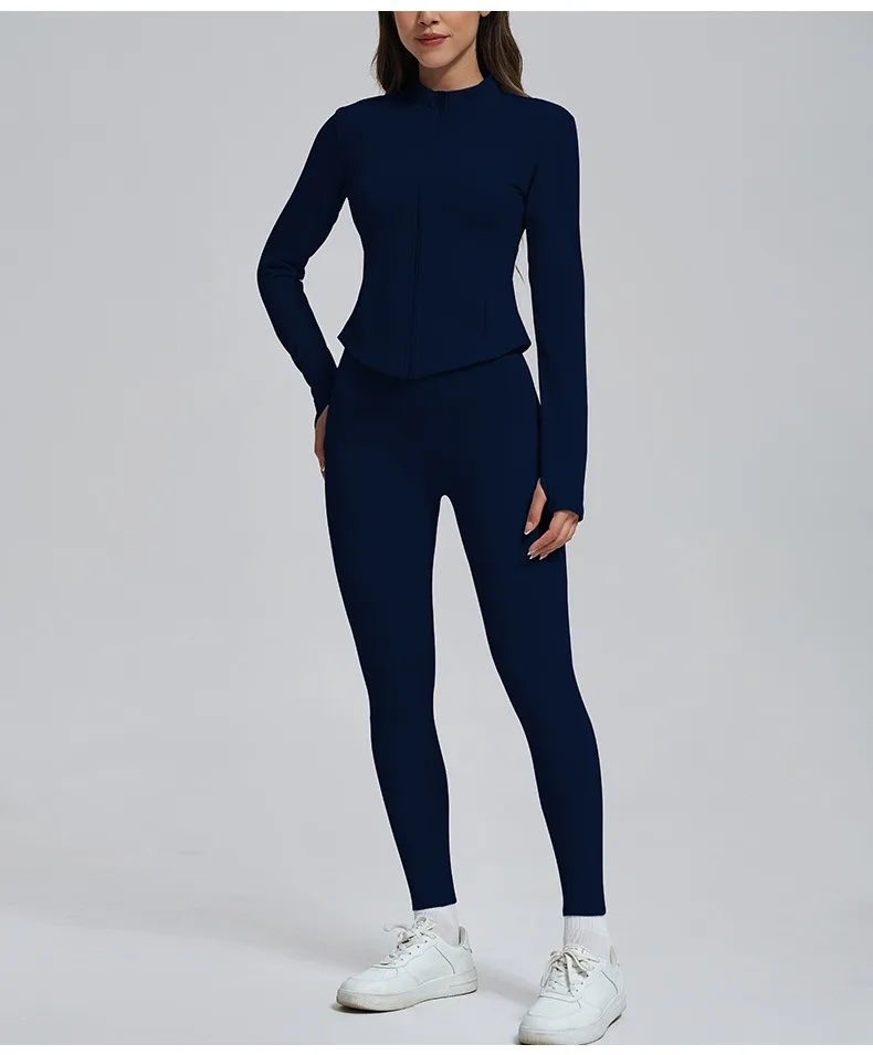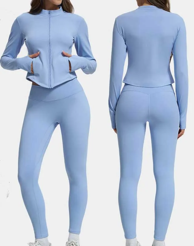 Wholesale Gym Fitness Jogger Sets 2 Pcs Tight-fitting Clothes Outfits Sport Zipper Long-sleeve Jacket Blue Yoga Set for Women