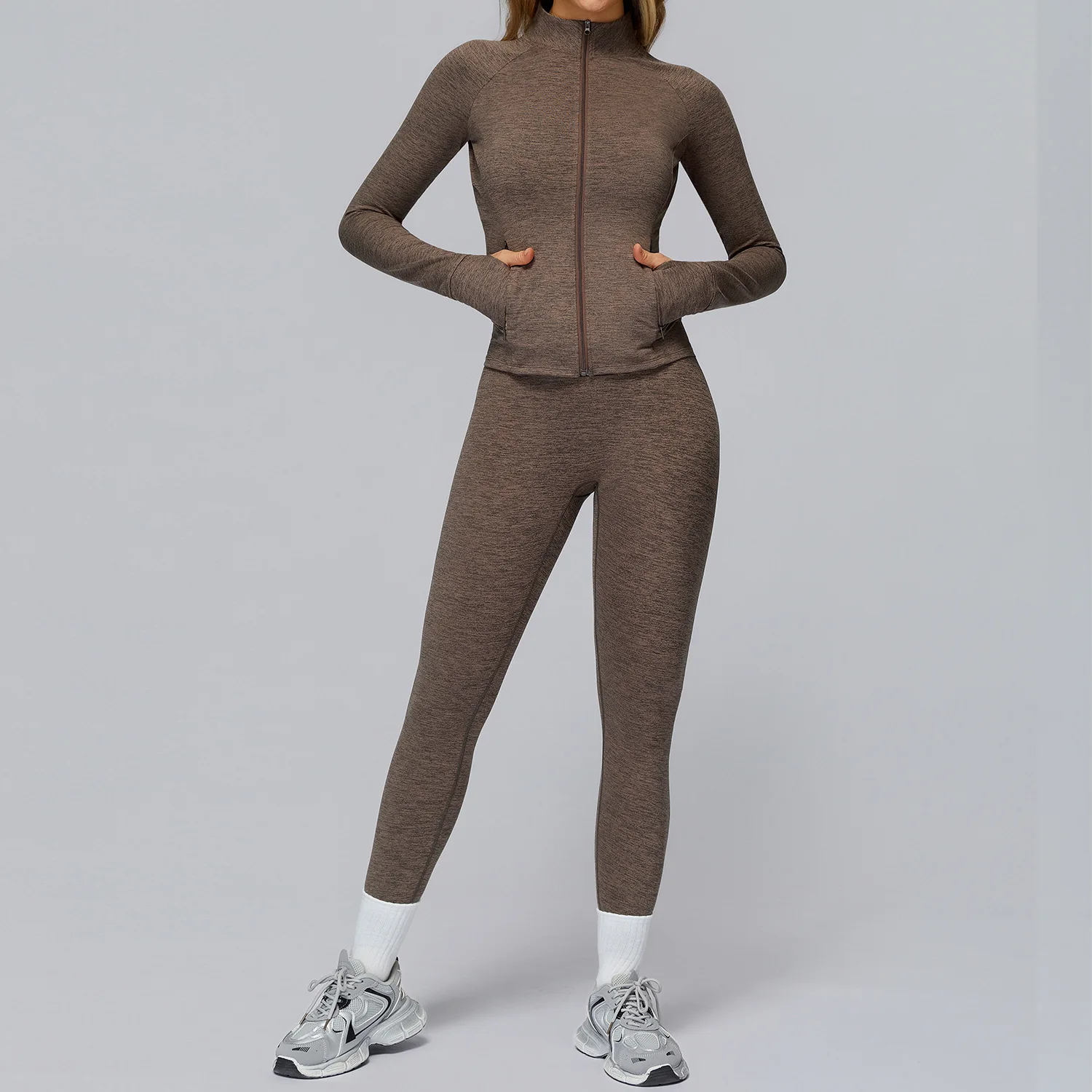 Customized Casual Long Sleeve Yoga Wrap Top Jackets Slim Fit Gym Outdoor Tight Leggings Running Sports Jacket Sets for Women