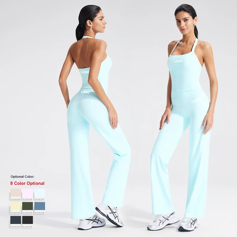 YISHENHON Recyclable Fabric Quick Dry Yoga V Waist Gym Leggings Running Workout Wide Leg Pants Flare Woman Sport Pants