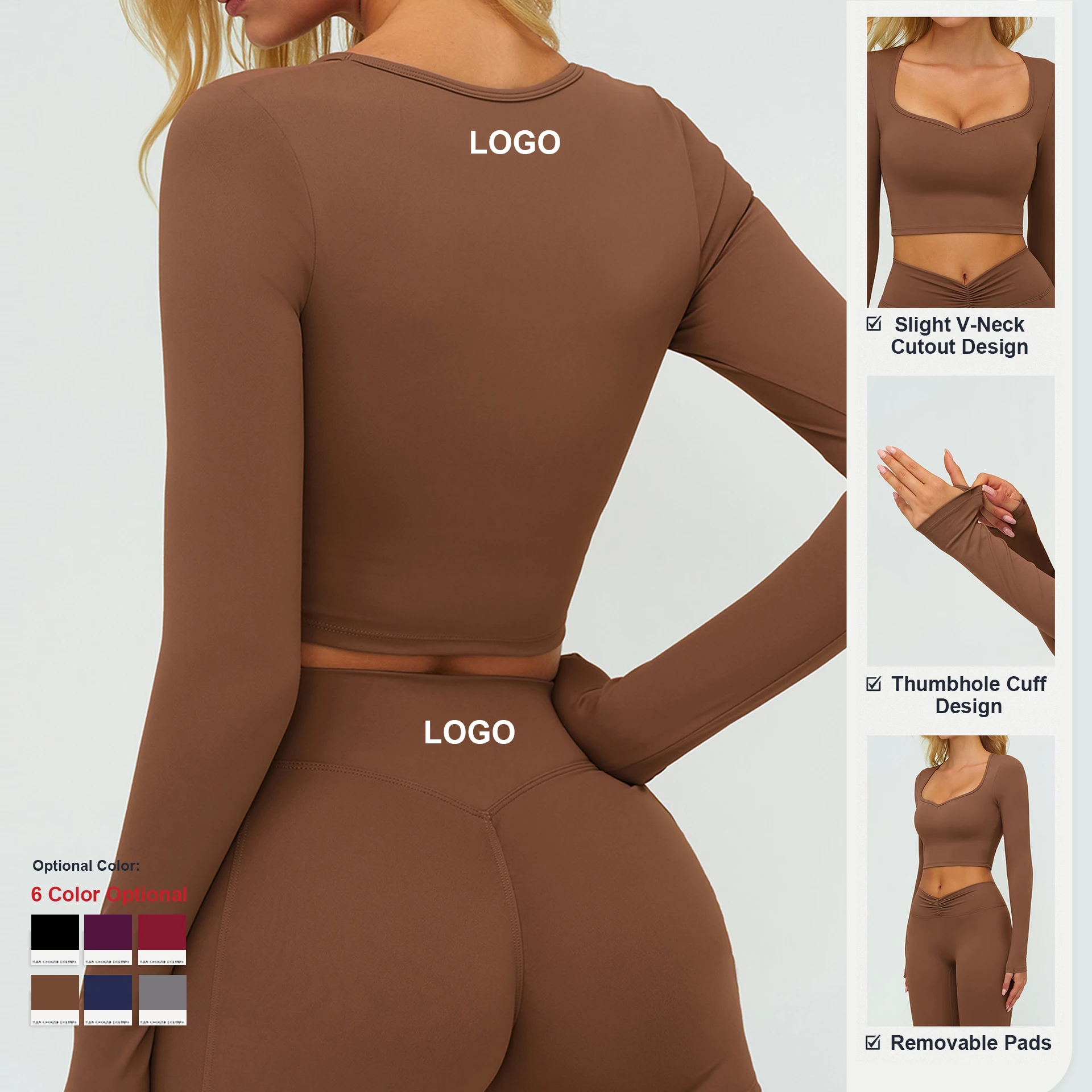 Custom Fabric Style Color Logo Quick Dry Brushed Long Sleeve Yoga Top Women Outdoor Running Fitness Shirt Casual Workout Clothes