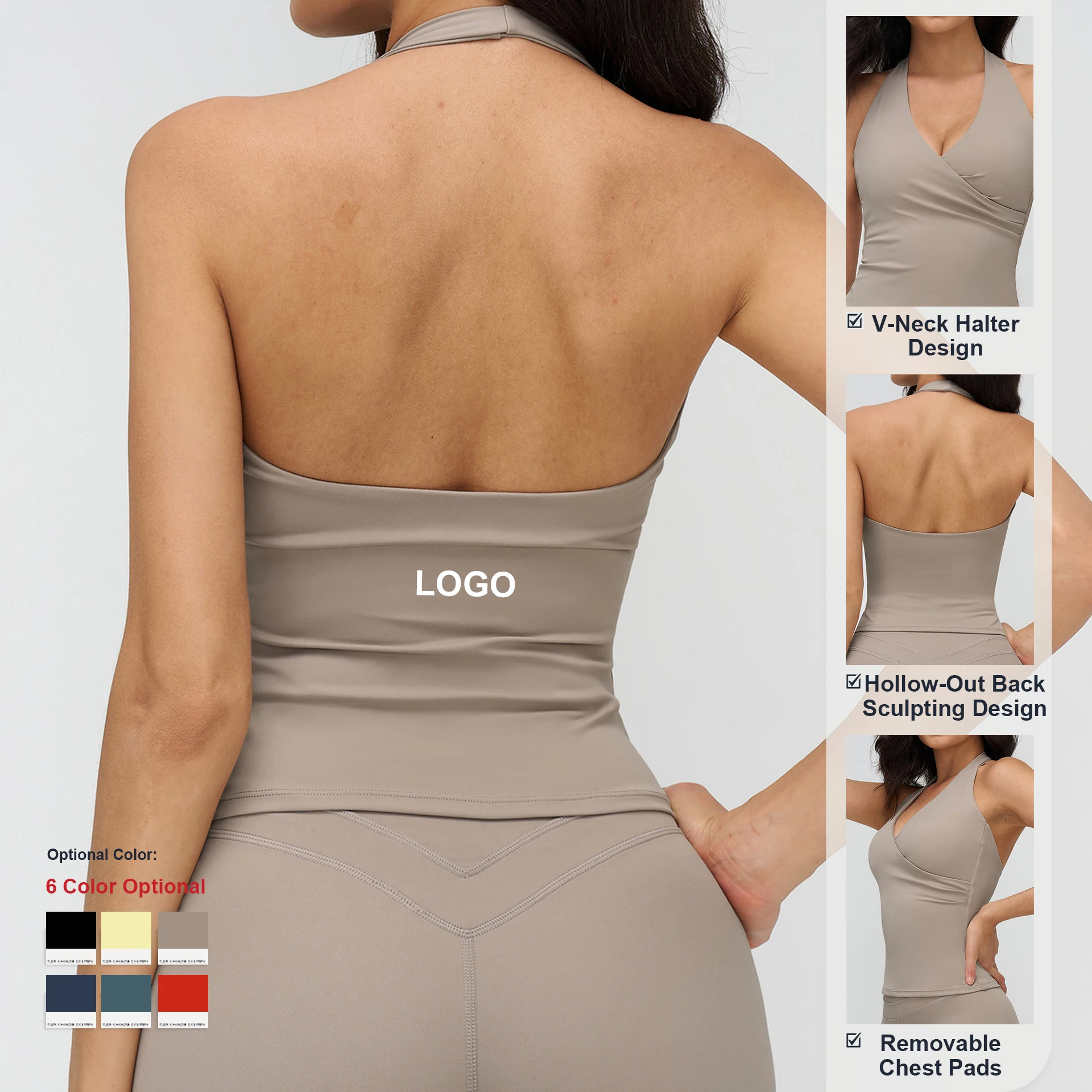 Custom High-Quality Quick-Drying V Neck Yoga Tank Top Tight-Fitting Backless Sports Vest Women Outdoor Running Fitness Sport Bra