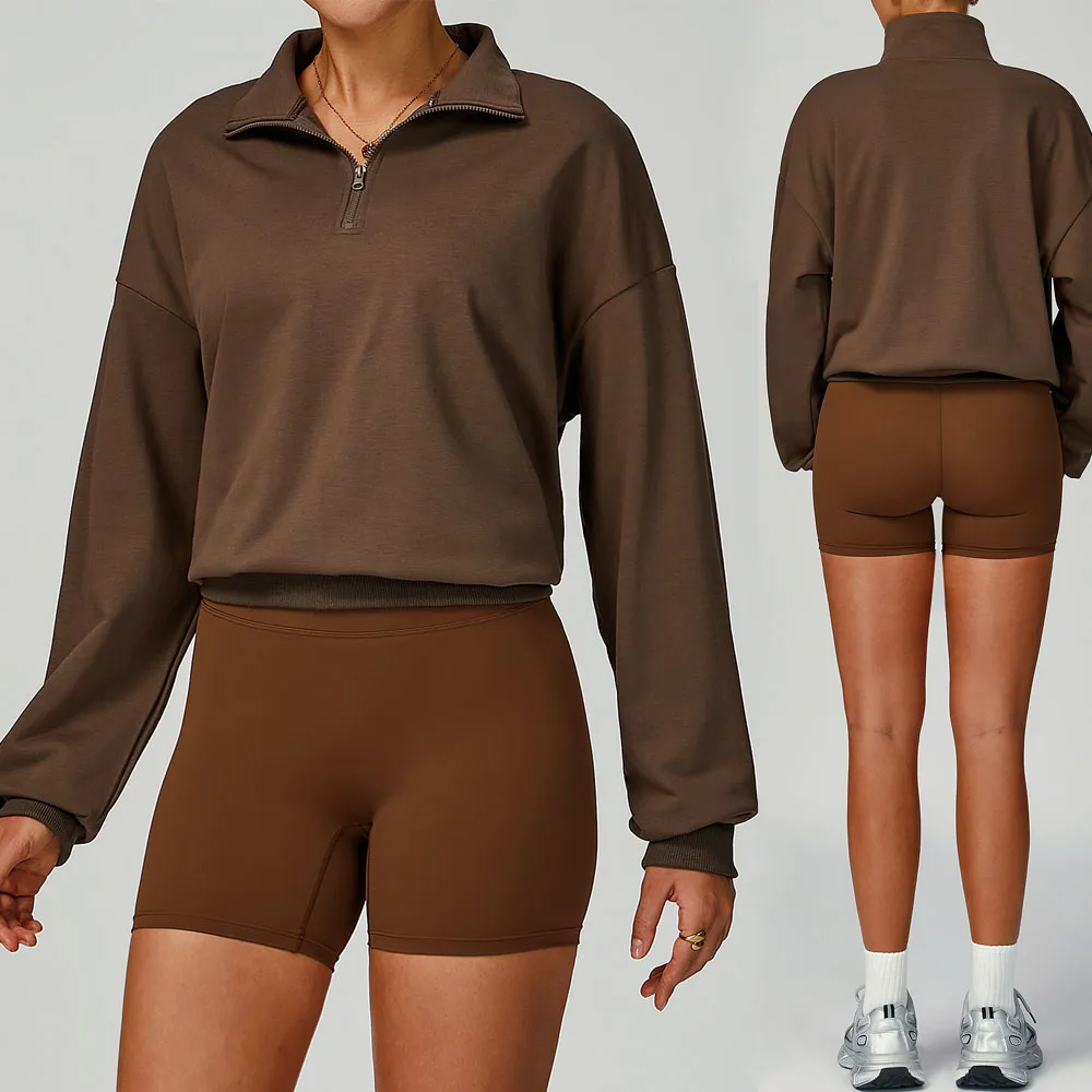Bnice 2040 Women Fall and Winter Sportswear Long Sleeve Fitness Top Zipper Sweatshirt Casual Loose Windproof Warm Gymwear