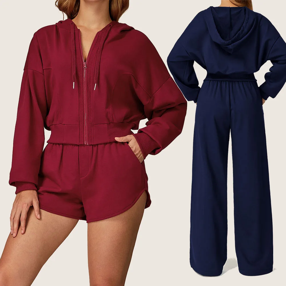 Wholesale Custom Logo Loose Sports Gym Yoga Pants Leggings Long Sleeve Women Hoodies Coat Clothes Sport Set