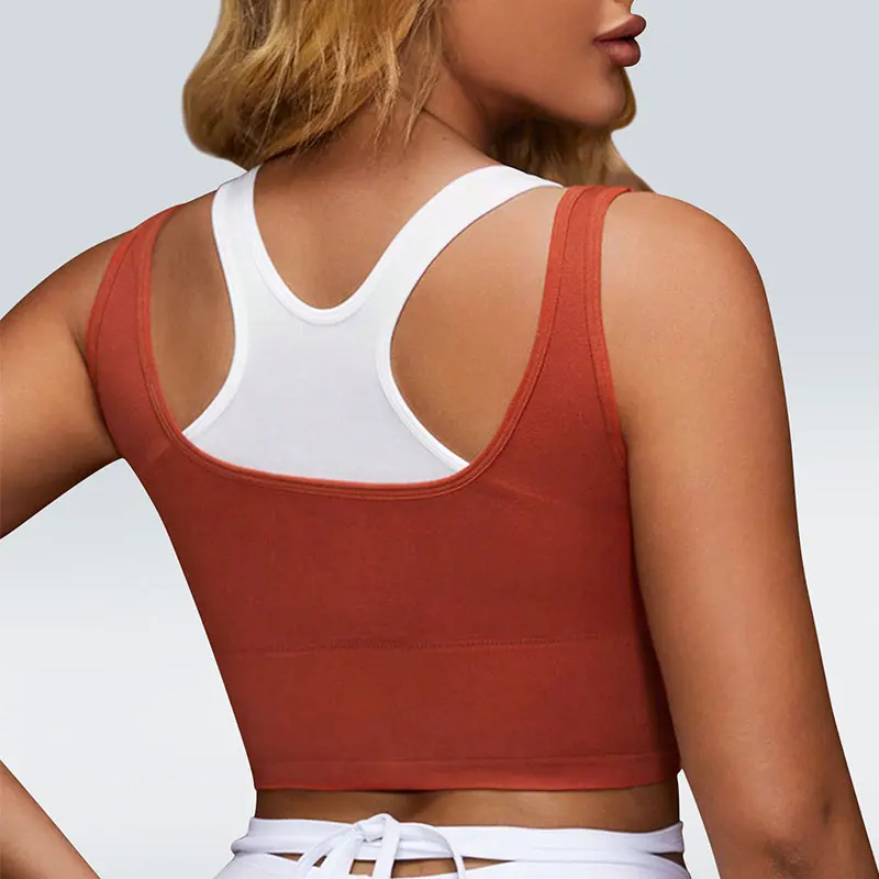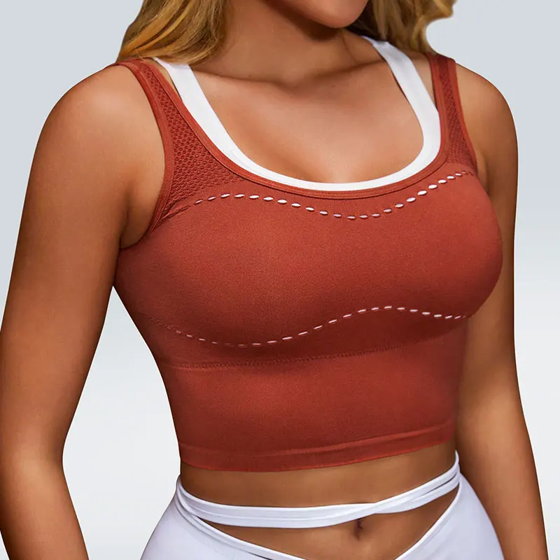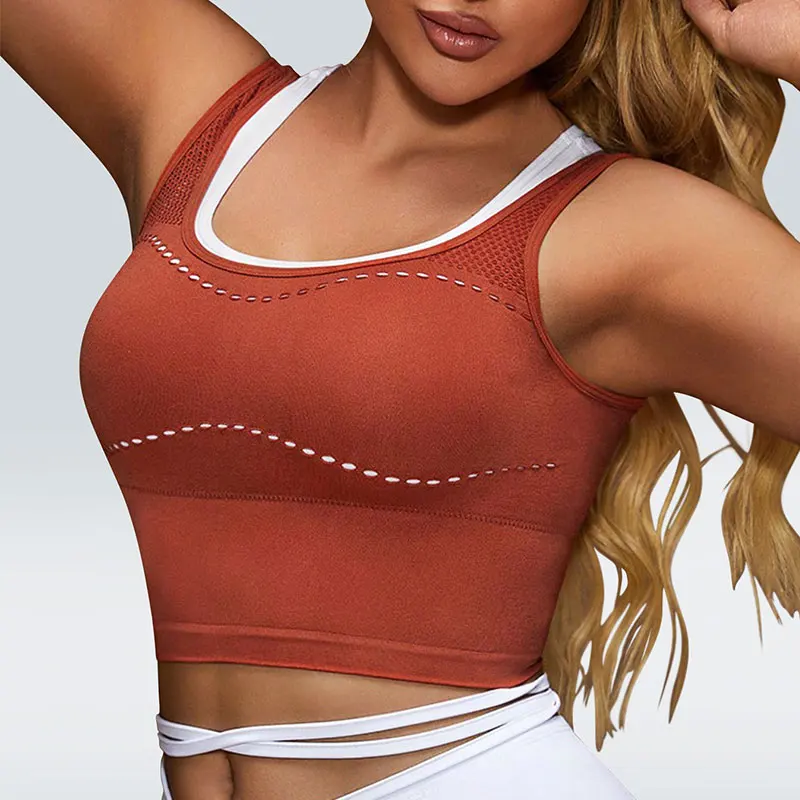 Wholesale Women's Yoga Sports Bra Breathable Seamless Layered-Look Design Hollow Out Elastic Running Sports Top