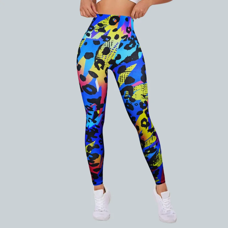 Customized Women's Yoga Pants High Waist Stretchy Butt Lifting Full Length with Multicolor Print for Sports Outwear