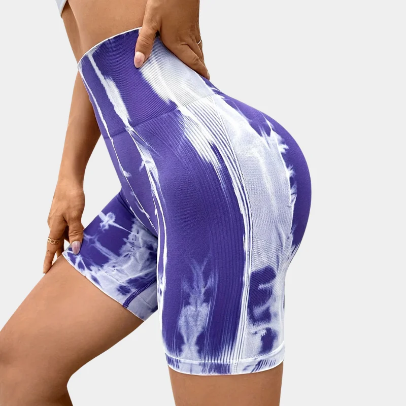 Customized Seamless Tie Dye Shorts Breathable Tummy Control High Waist High Stretch Yoga Sports Wear for Women