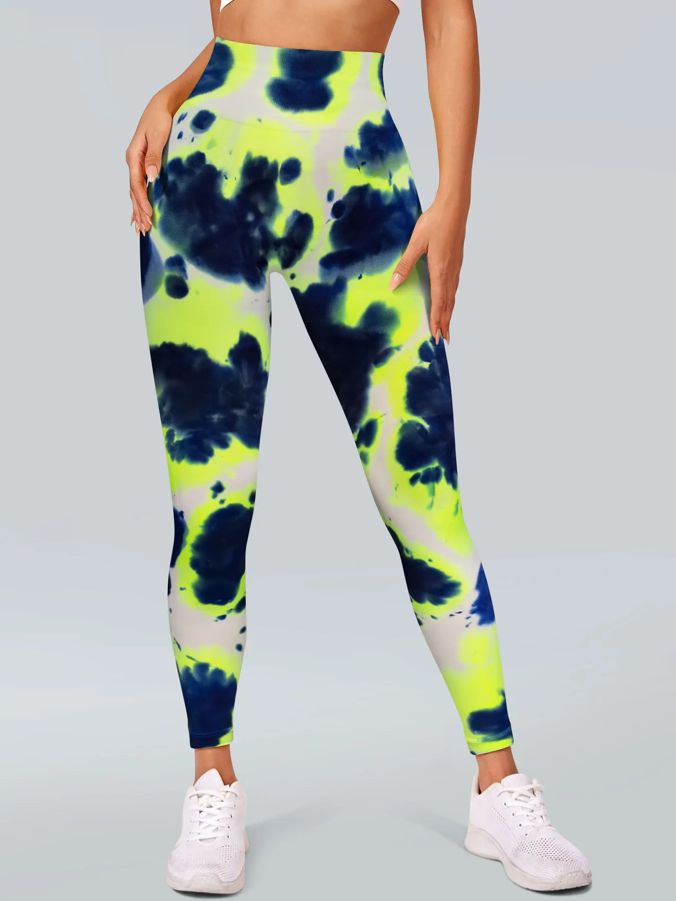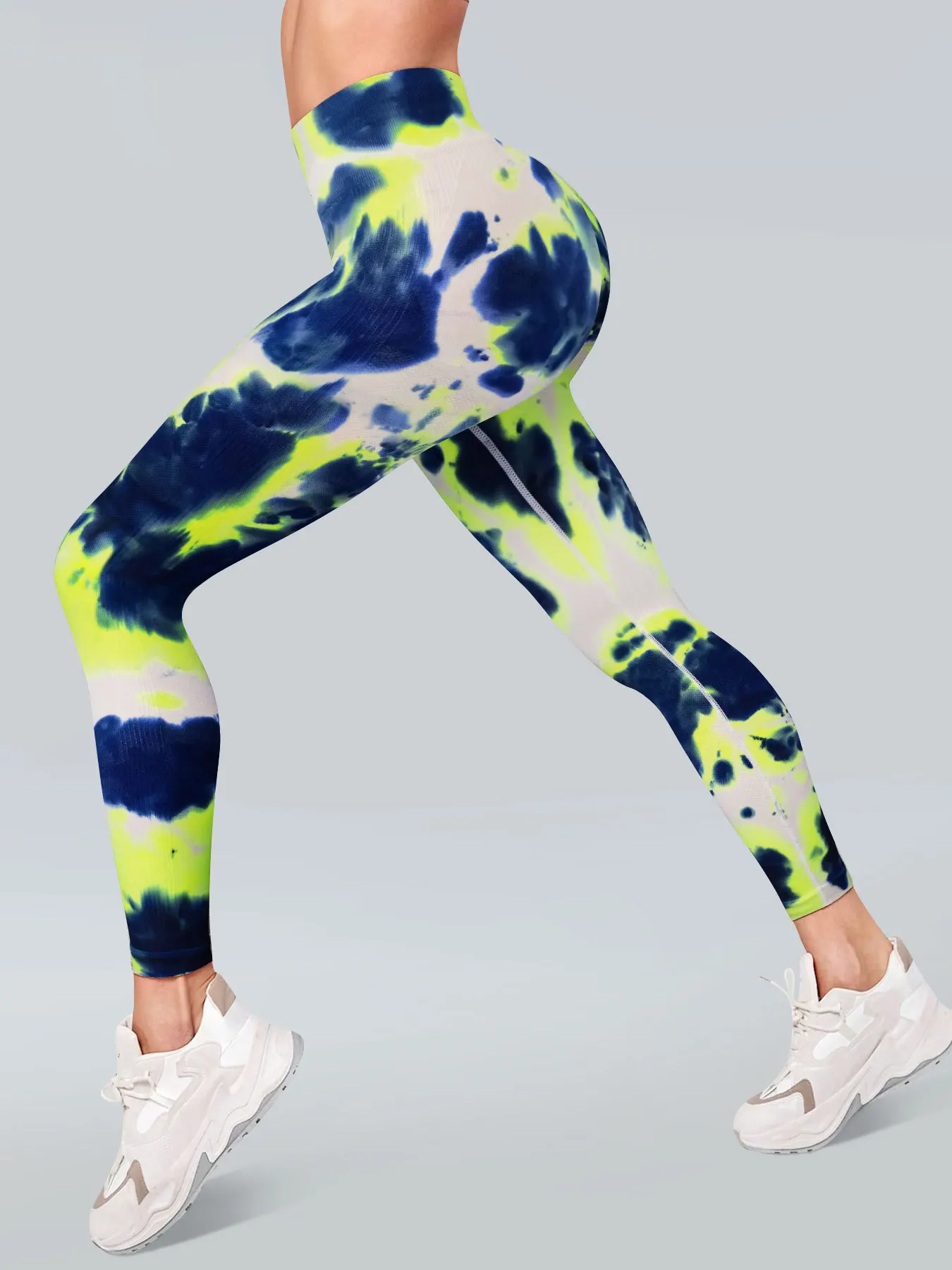 Hot Selling Blue and Green Tie Dye Yoga Pants for Women High Waist Breathable Seamless Leggings Elastic Waist for Sports Fitness