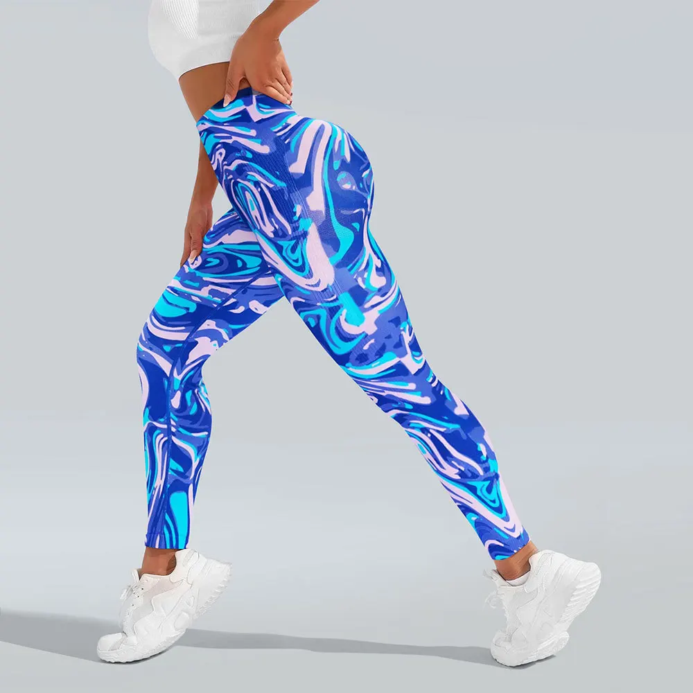 Women's Swirl Print High Waist and Breathable Leggings Stretchy Breathable Figure Flattering for Yoga and Fitness