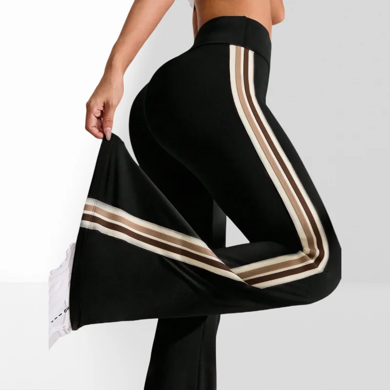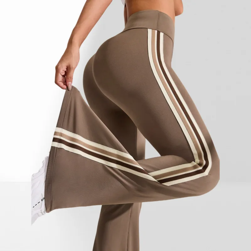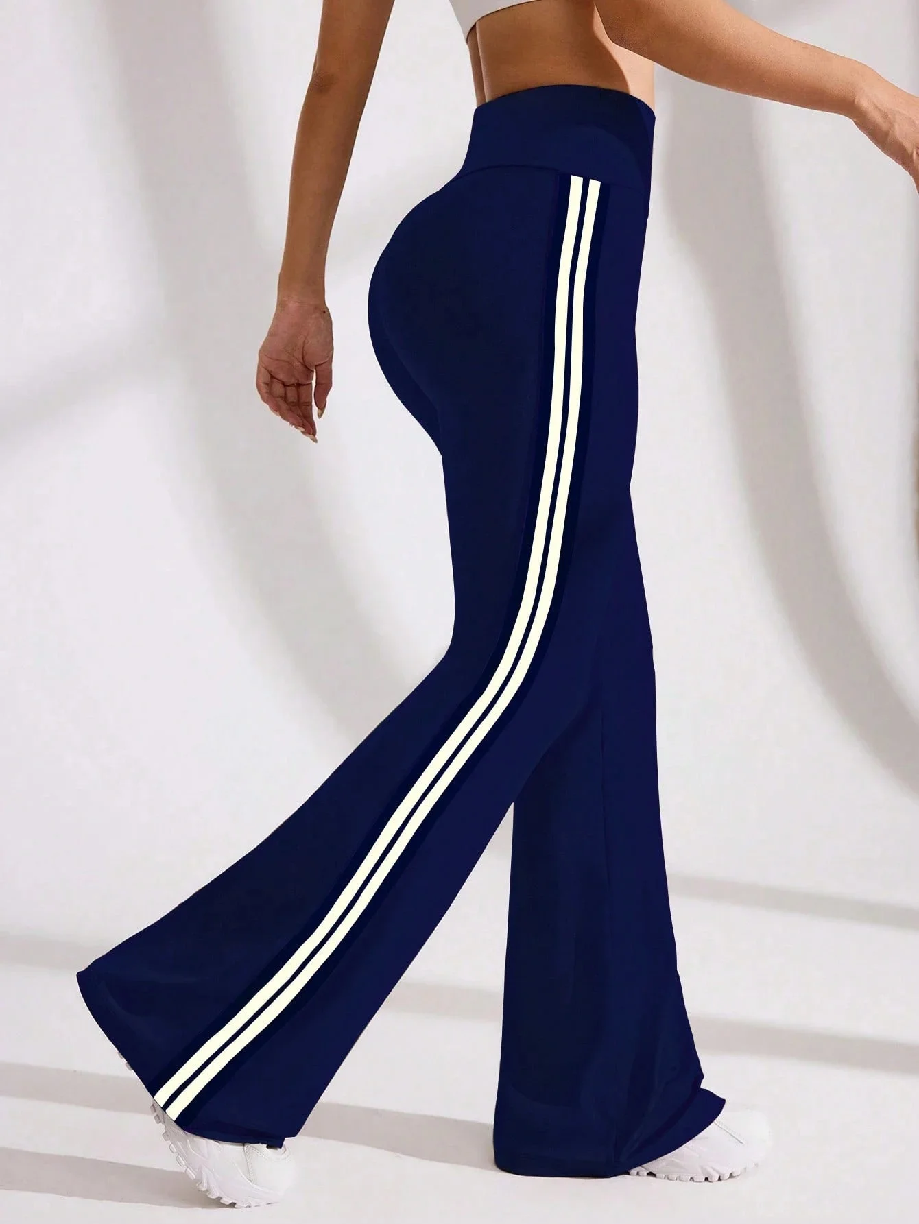 Women's High Waist Solid Stretchy Flared Leg Gym Dance Yoga Pants Breathable Non-See-Through Workout Trousers