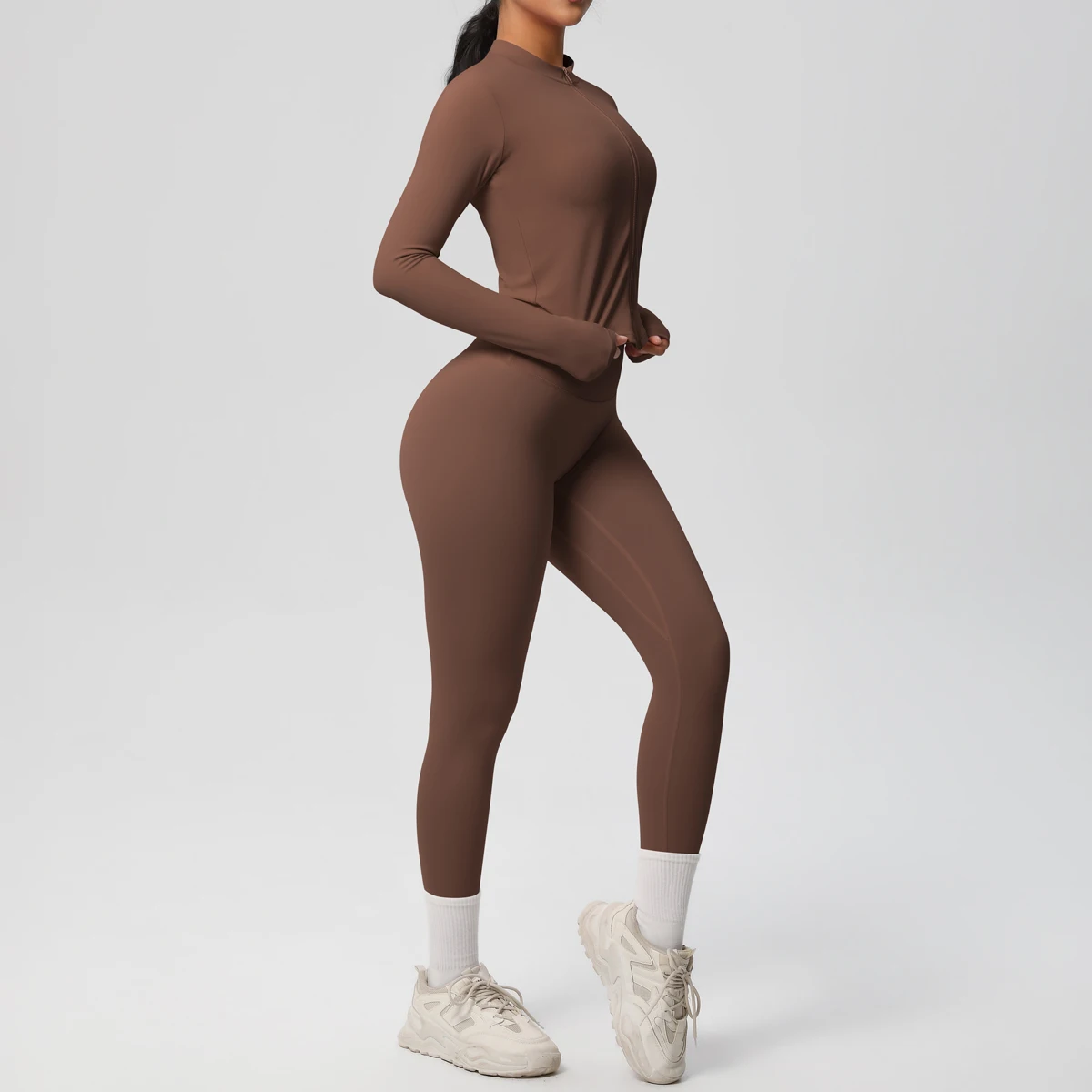 Hot Selling Two Pieces Jacket Legging Set Women Workout Running Activewear High Quality Nude Feeling Athletic Yoga Fitness Sets