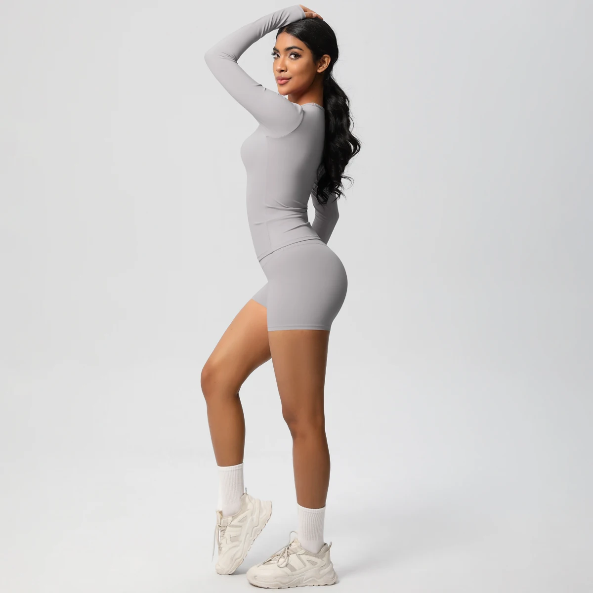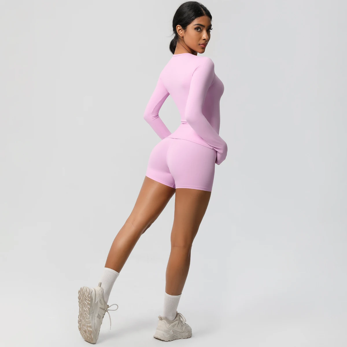 Women Running Tracksuit Long Sleeve Gym Fitness Clothes Workout Top High Waist Yoga Shorts Leggings Two-Piece Set for Women