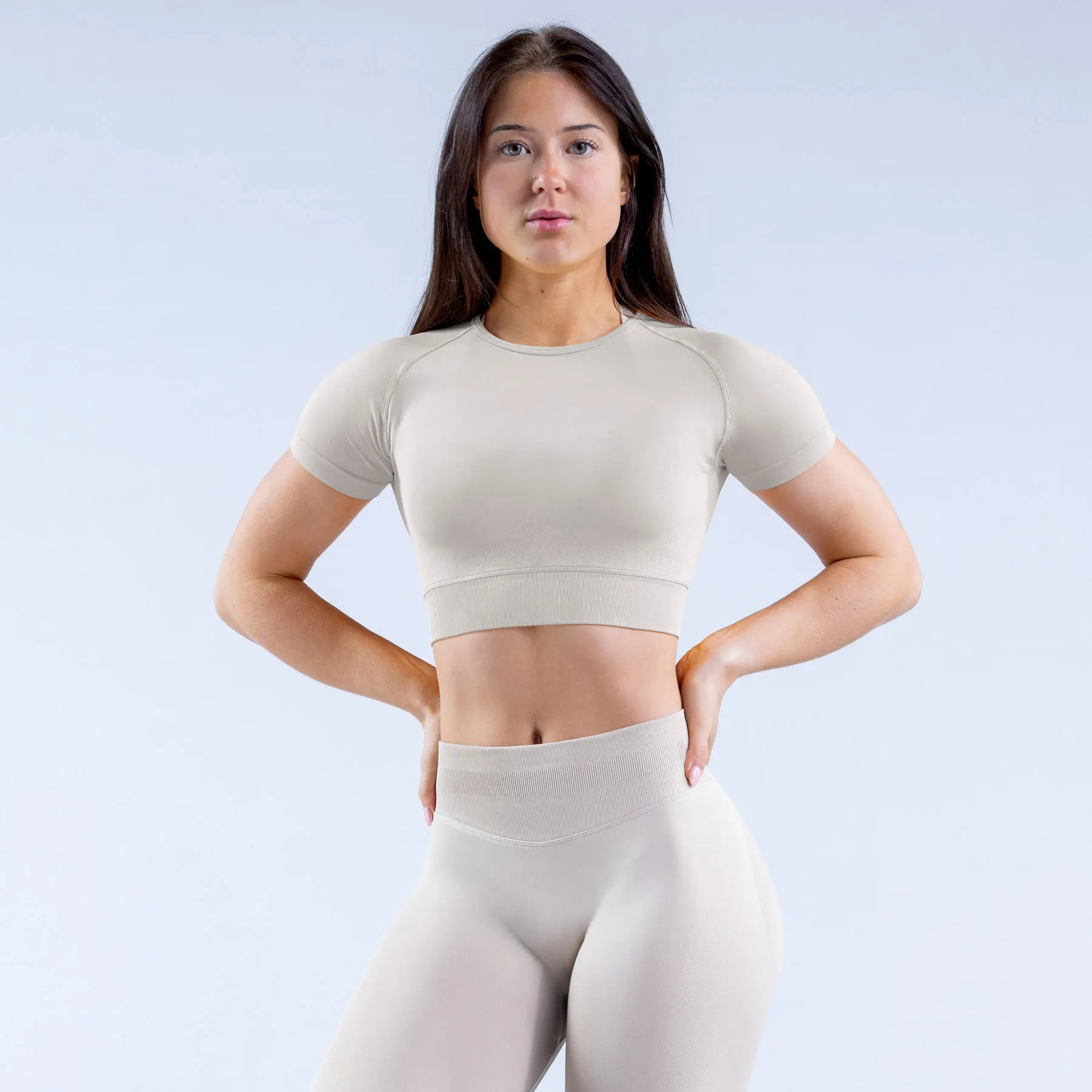 High Elastic Moisture Absorption and Sweat Wicking Fitness Sets Tight Seamless Short Sleeve Leggings Fitness Yoga Sets