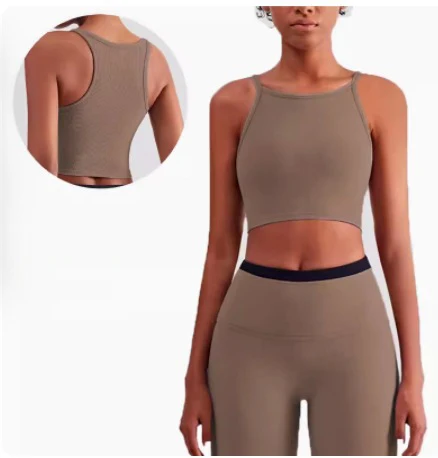 Wholesale Ribbed High Neck Yoga Crop Top Women Gym Fitness Sportswear Yoga Bra Top Ladies Yoga Tanks