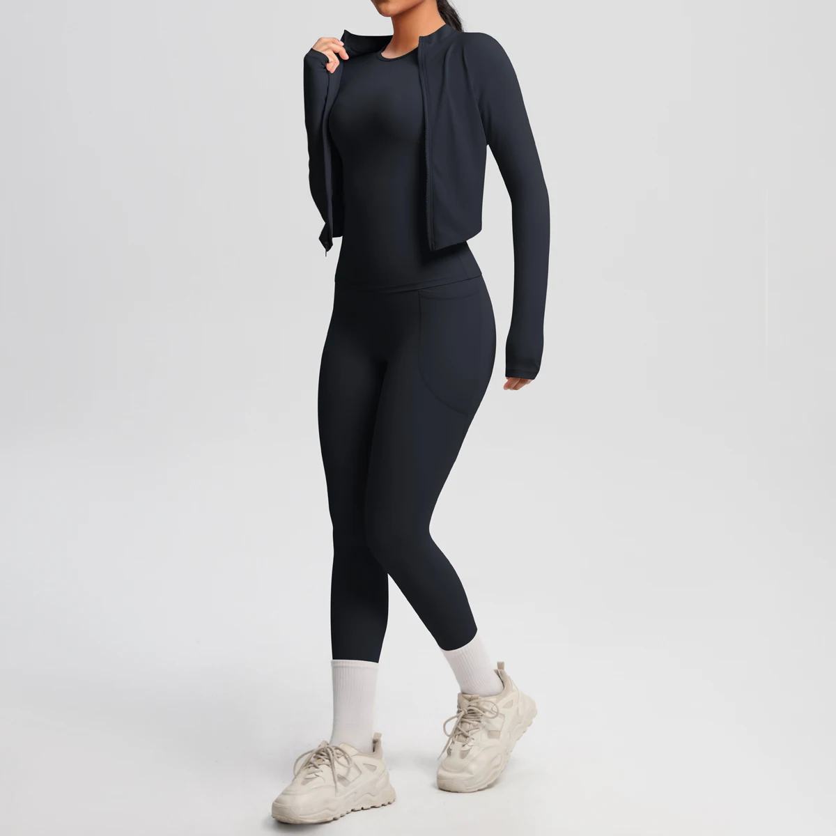 YISHENHON New Arrivals Quick-drying Women's Tight Running Sports Fitness Yoga Jacket Activewear Zip Long Sleeve Workout Crop Top