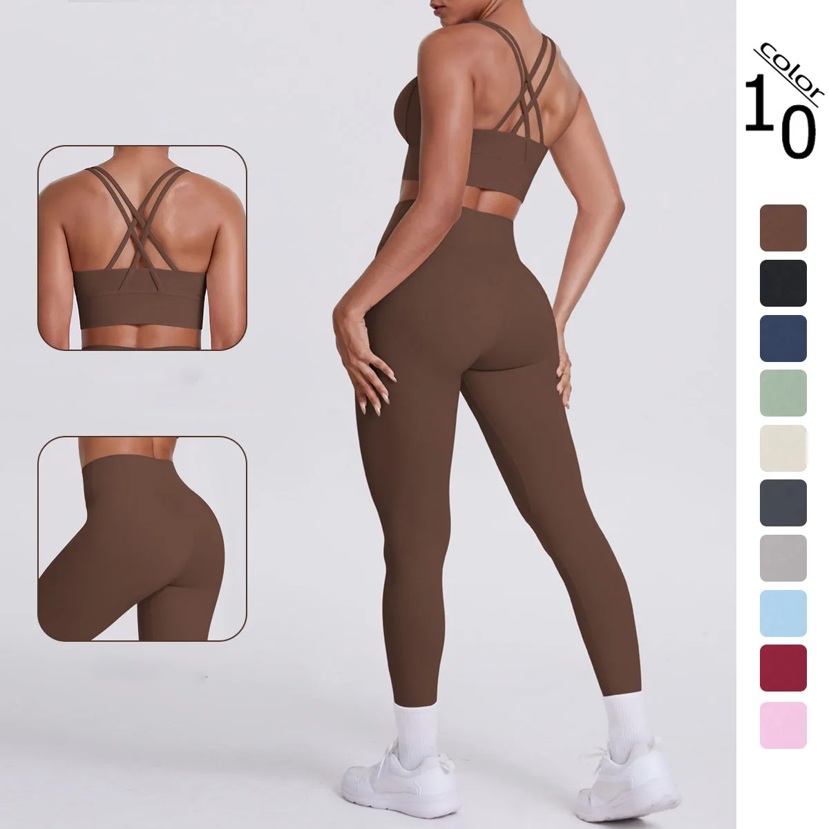 In Stock Within 24 Hours Shipping Cross Back Bra Casual Sports Hip Lift Pants Fitness Yoga Clothing Two-piece Set