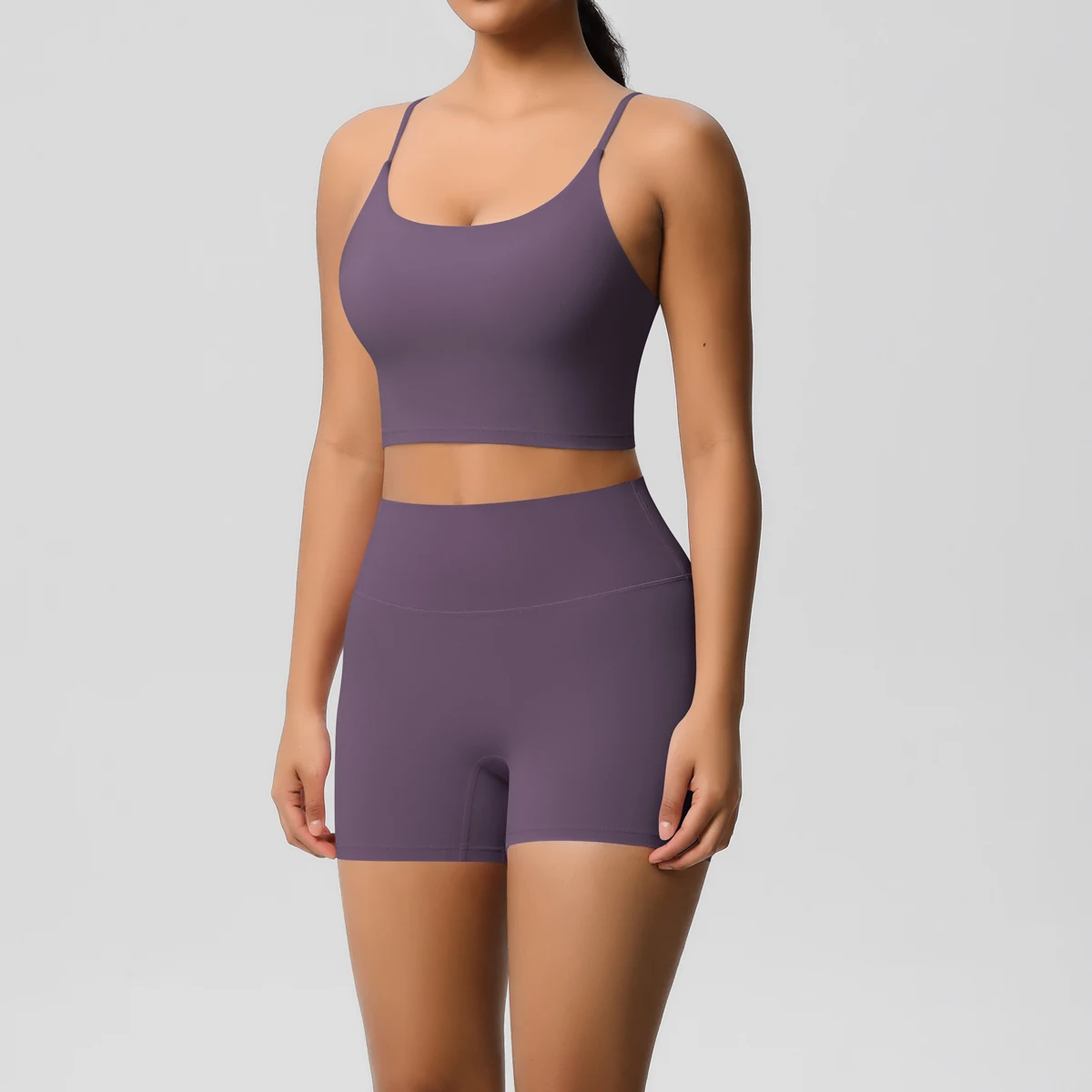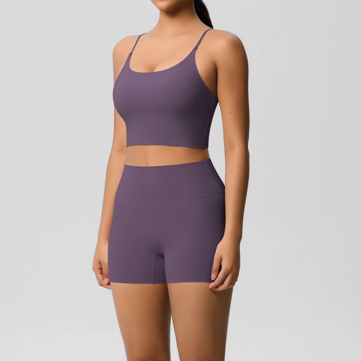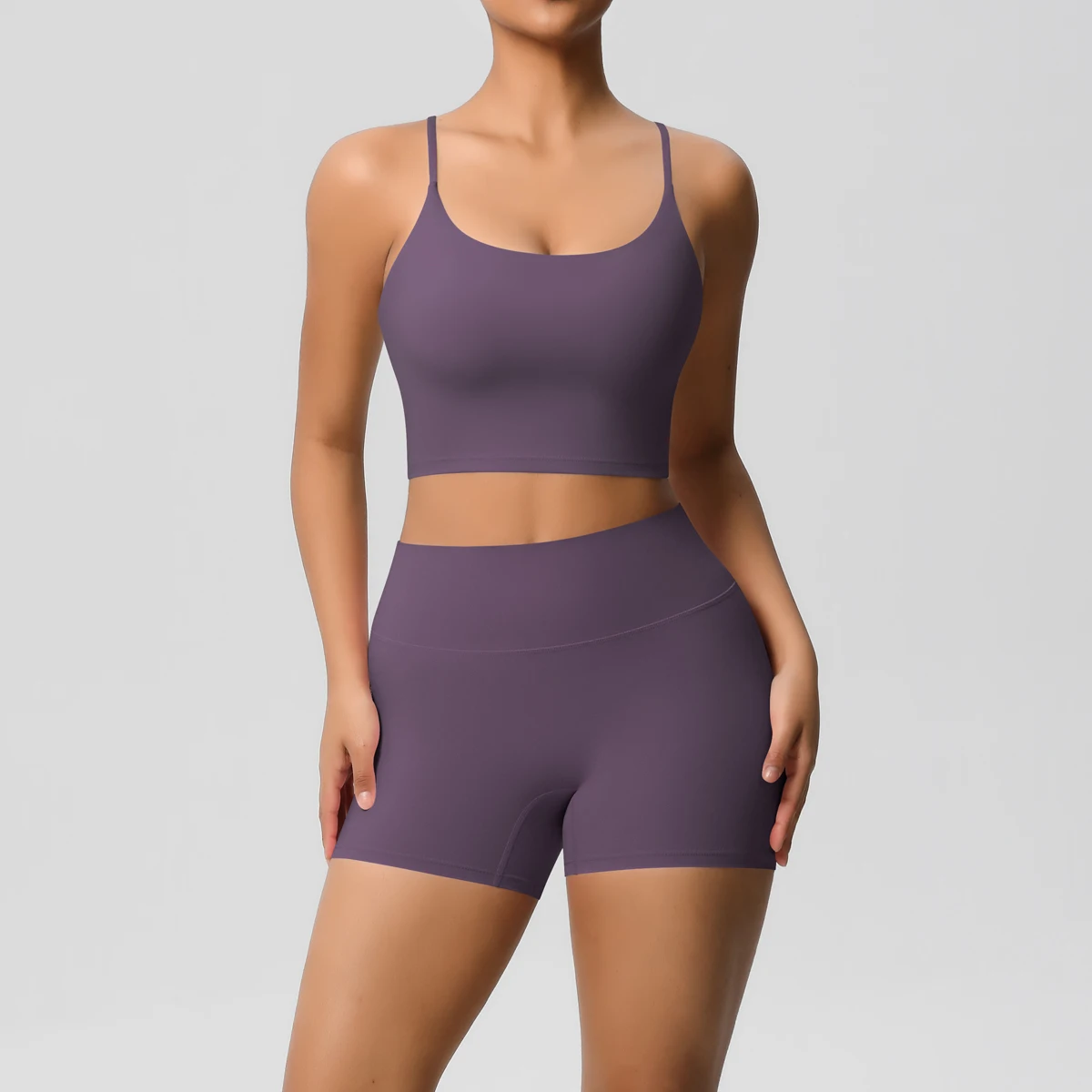 Wholesale High Quality Nylon and Spandex Fitness Yoga Vest and Pocket Short 2 Pieces Set Yoga Set for Women