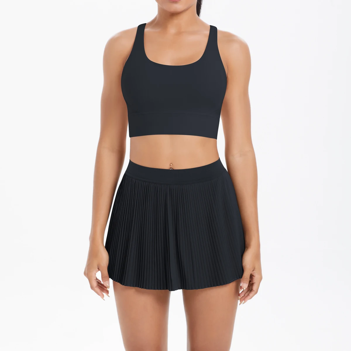 High Quality New Casual Yoga Set with Short Skirt with Pockets and Sports Bra for Workout Set