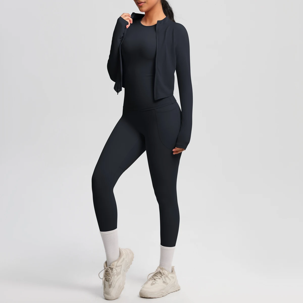 YISHENHON New Arrivals Quick-drying Women's Tight Running Sports Fitness Yoga Jacket Activewear Zip Long Sleeve Workout Crop Top