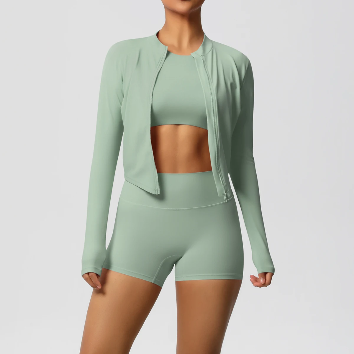 YISHENHON New Arrivals Quick-drying Women's Tight Running Sports Fitness Yoga Jacket Activewear Zip Long Sleeve Workout Crop Top