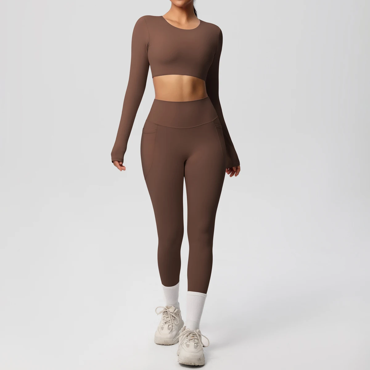 Customized High Quality Solid Color Yoga Suit Sports Running Fitness Clothing Two Piece Set