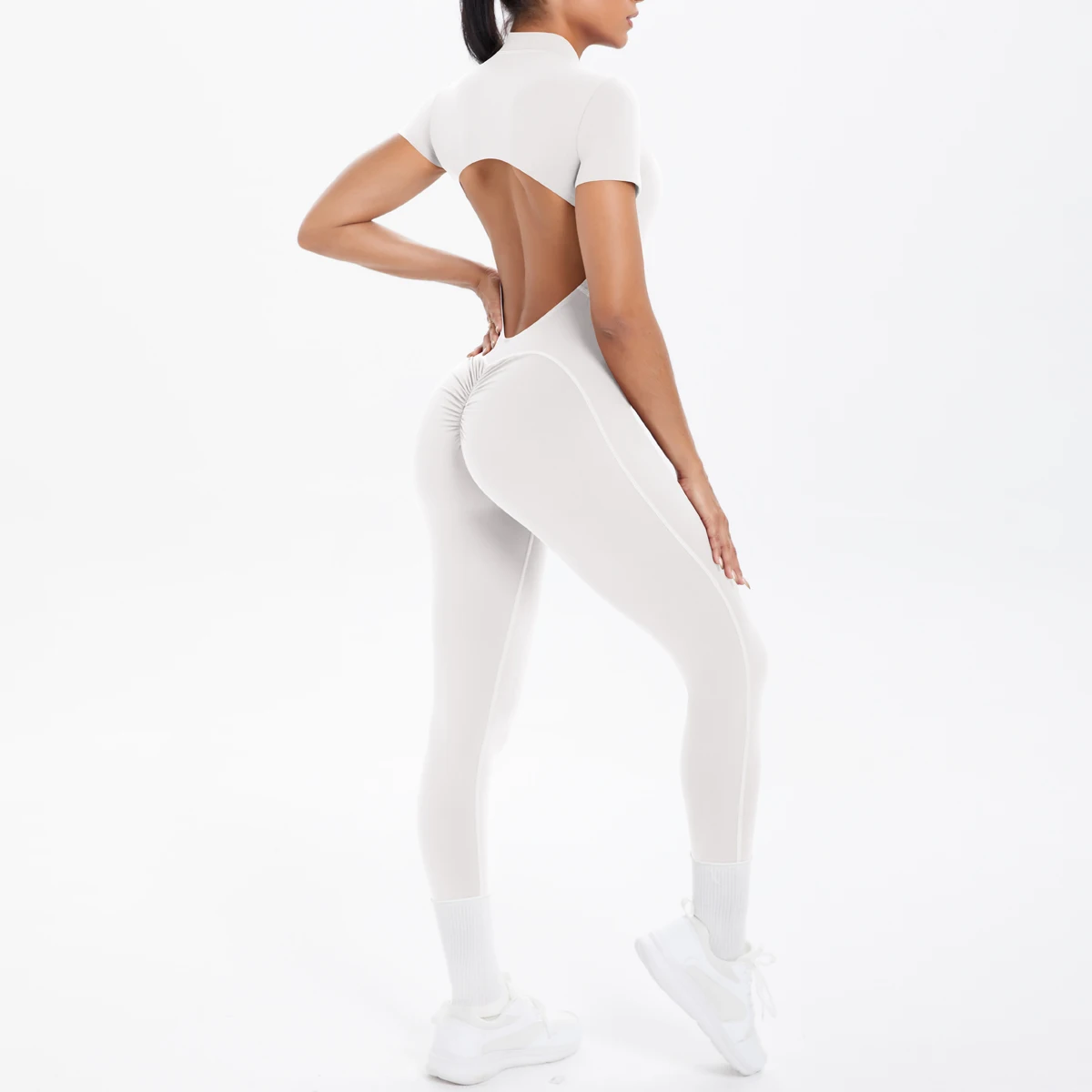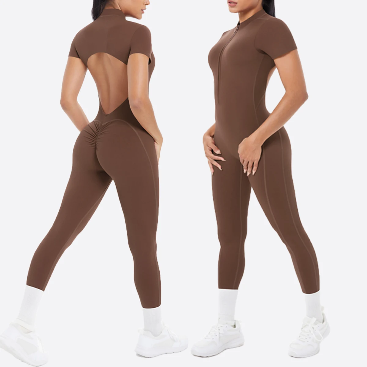 High Quality New Open Zipper with Chest Pad Short Sleeve Jumpsuits Fitness Beauty Back Sports Jumpsuit Tight Yoga Kit