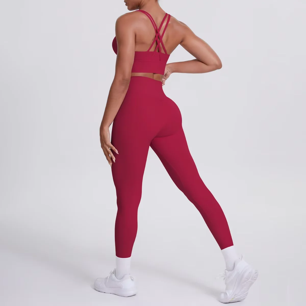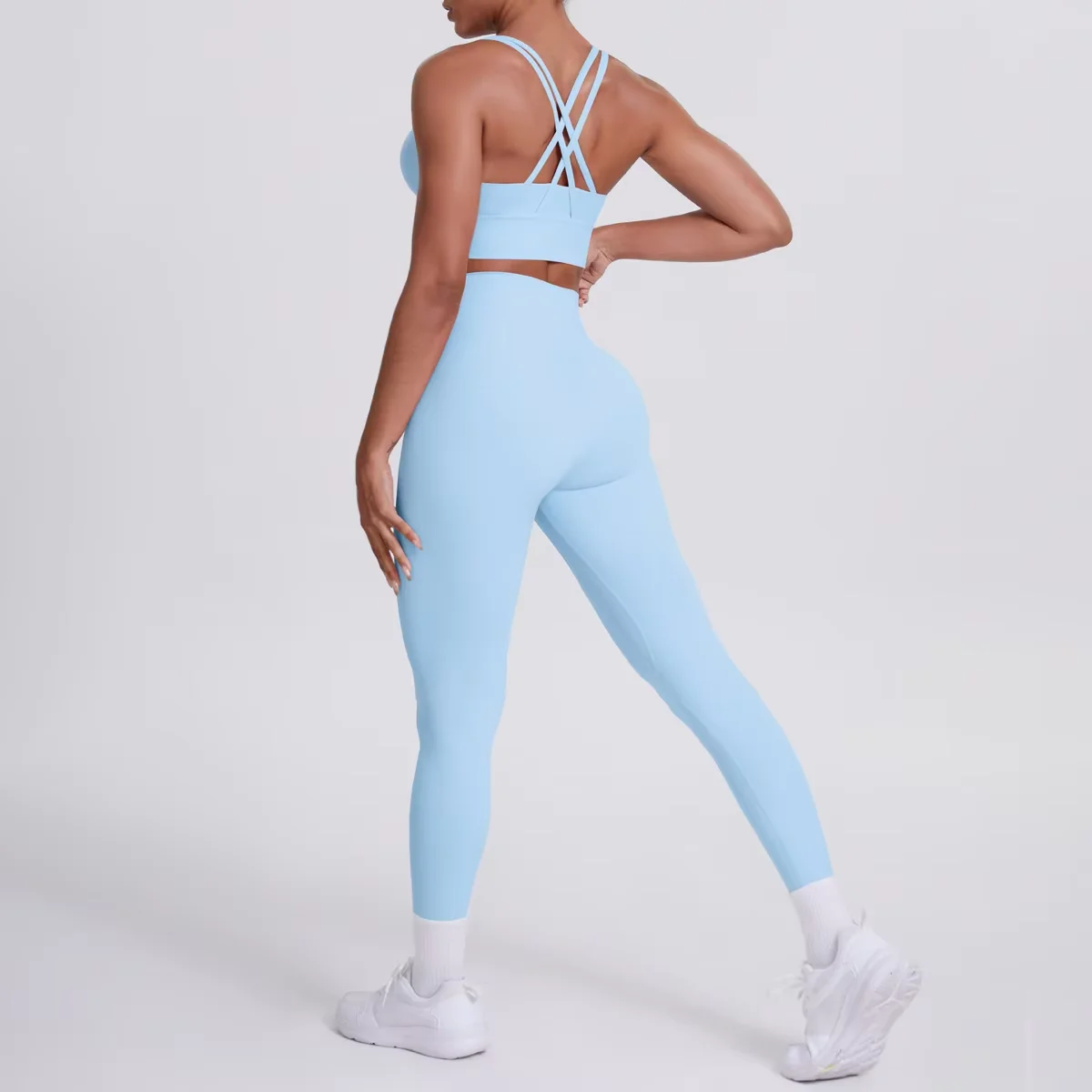High Quality Cross Back Shoulder Straps Yoga Set Breathable Solid Color Sport Pants Sexy Running Fitness Shorts with Front Logo