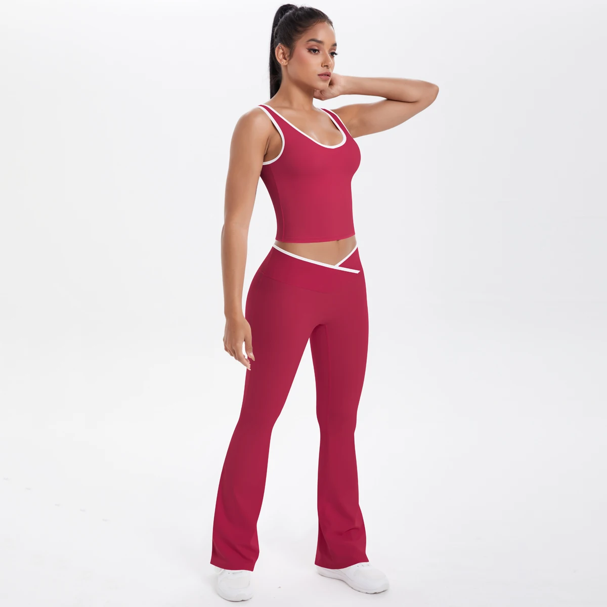 Hot Sale High Quality Custom Logo Women Sports Wear U-Back Fitness Tank Flared Pants Yoga Sets
