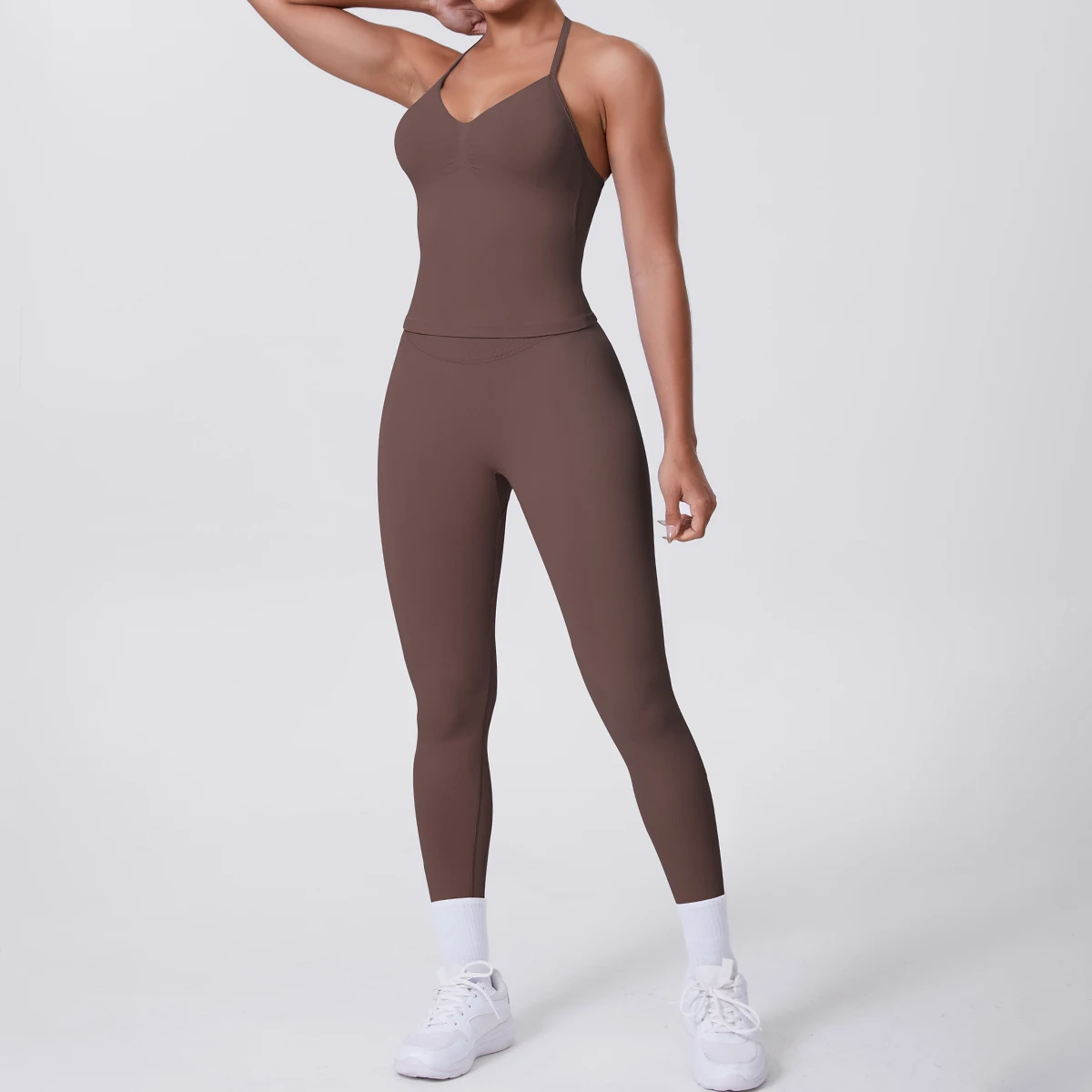 Wholesale in Stock Women's Fitness Sets Two Pieces Plus Size Active Vest Buttery Soft Naked Feel Leggings
