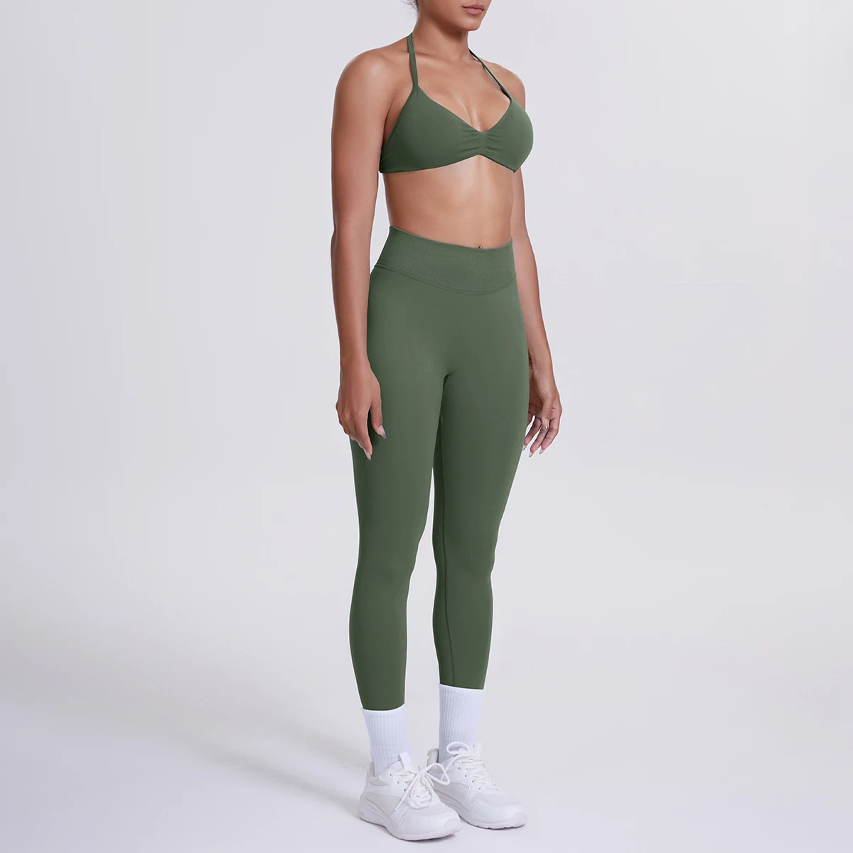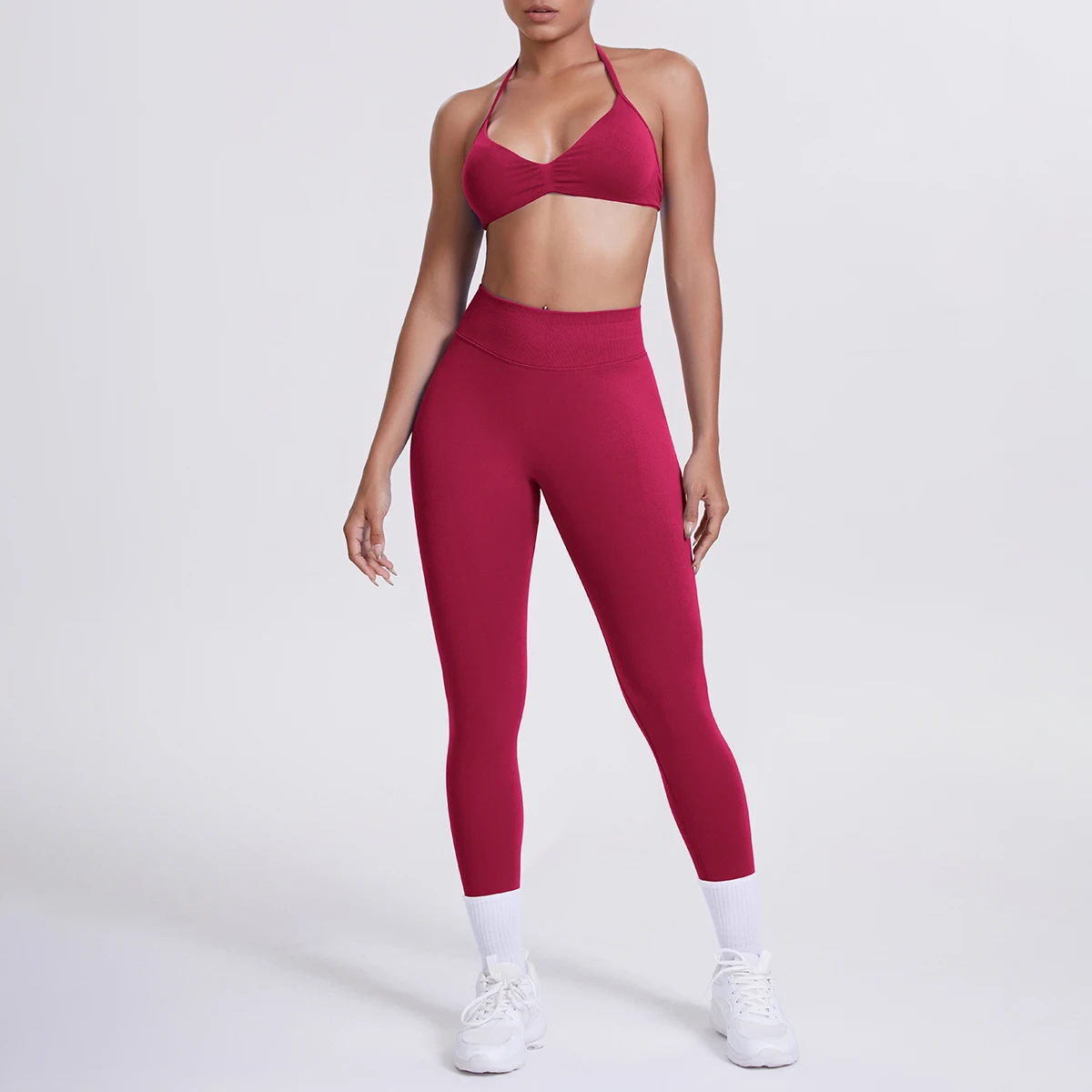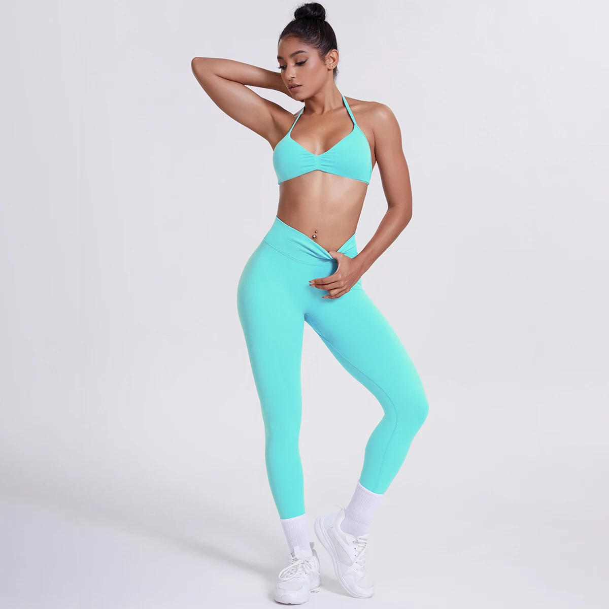Hot Sale High Quality Breathable Solid Sports Bra High Waist Leggings Suit Women Sportswear Two Piece Yoga Workout Clothes Set
