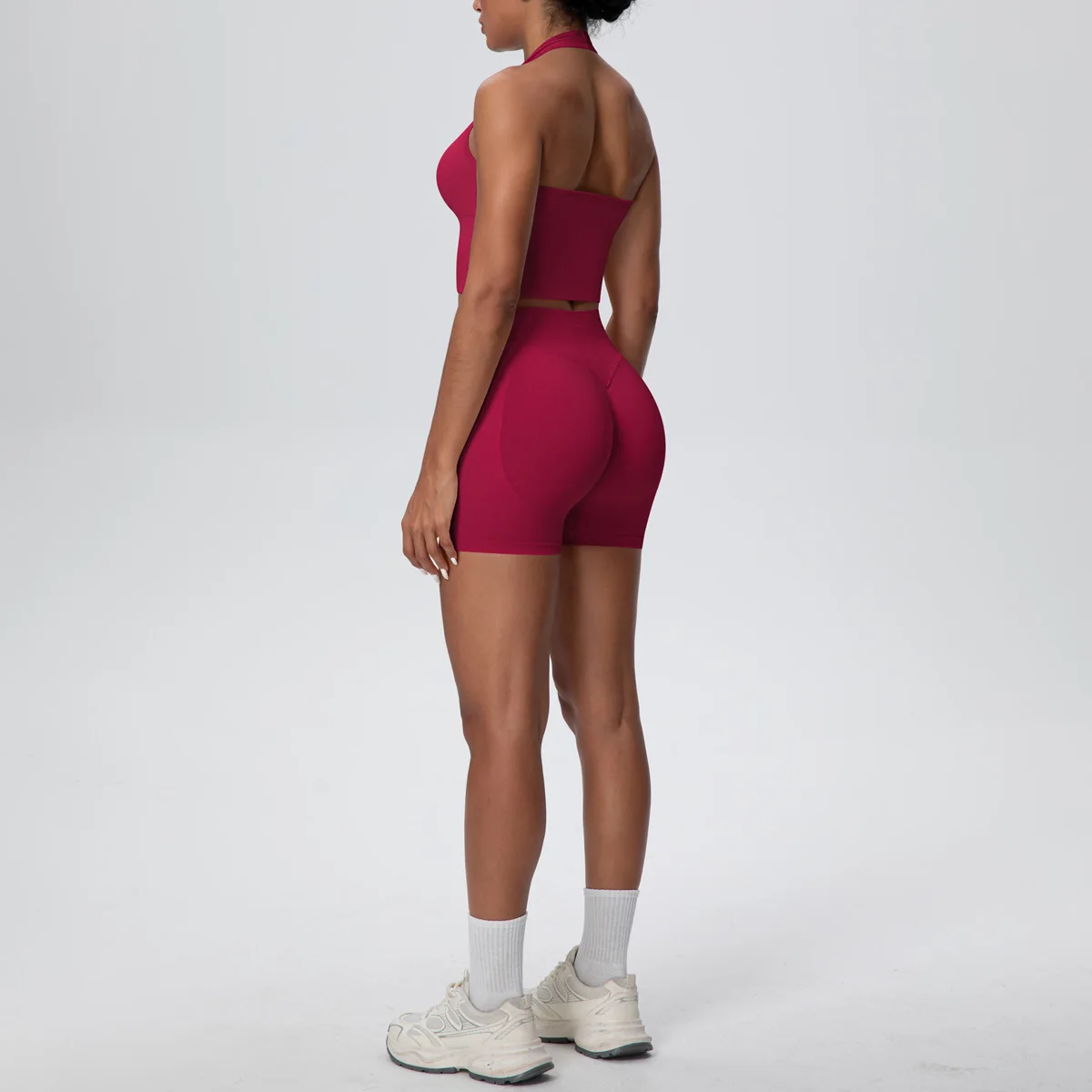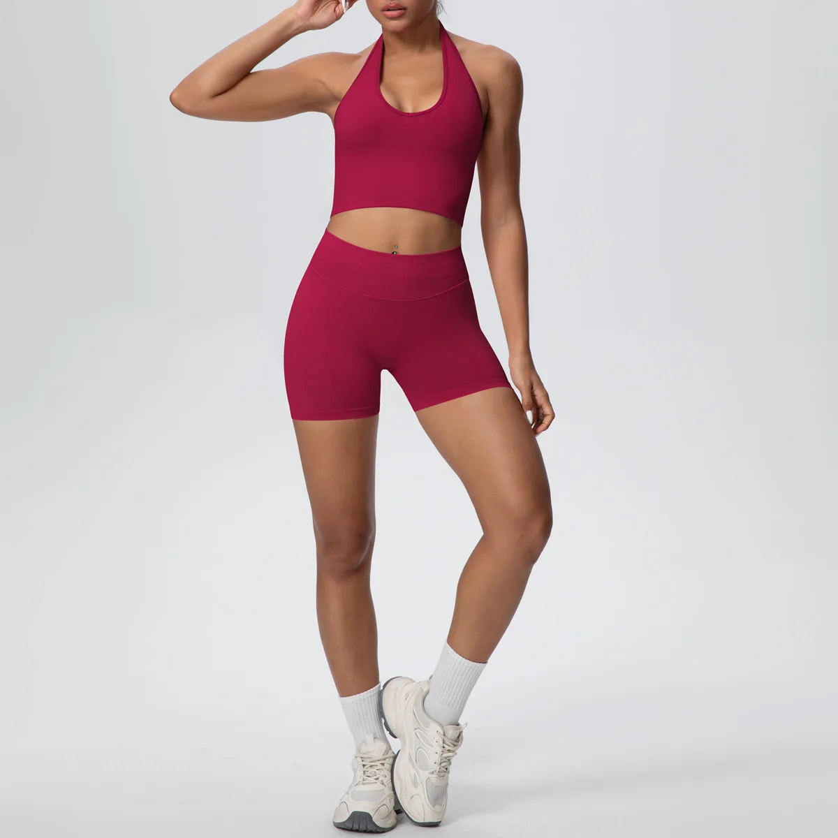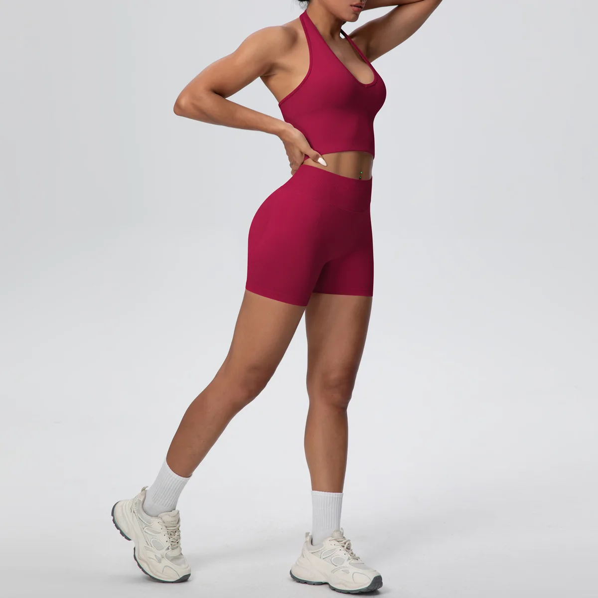 Breathable Four-Way Stretch Racerback Yoga Set-Seamless High Waist Shorts & Sports Bra Plus Size