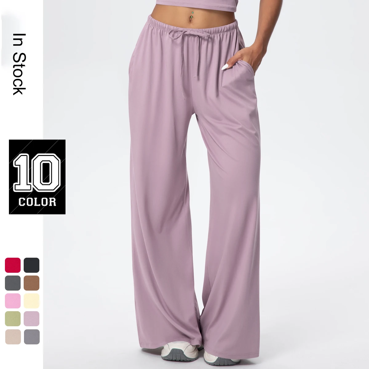 YISHENHON Recyclable Fabric Quick Dry Yoga V Waist Gym Leggings Running Workout Wide Leg Pants Flare Woman Sport Pants
