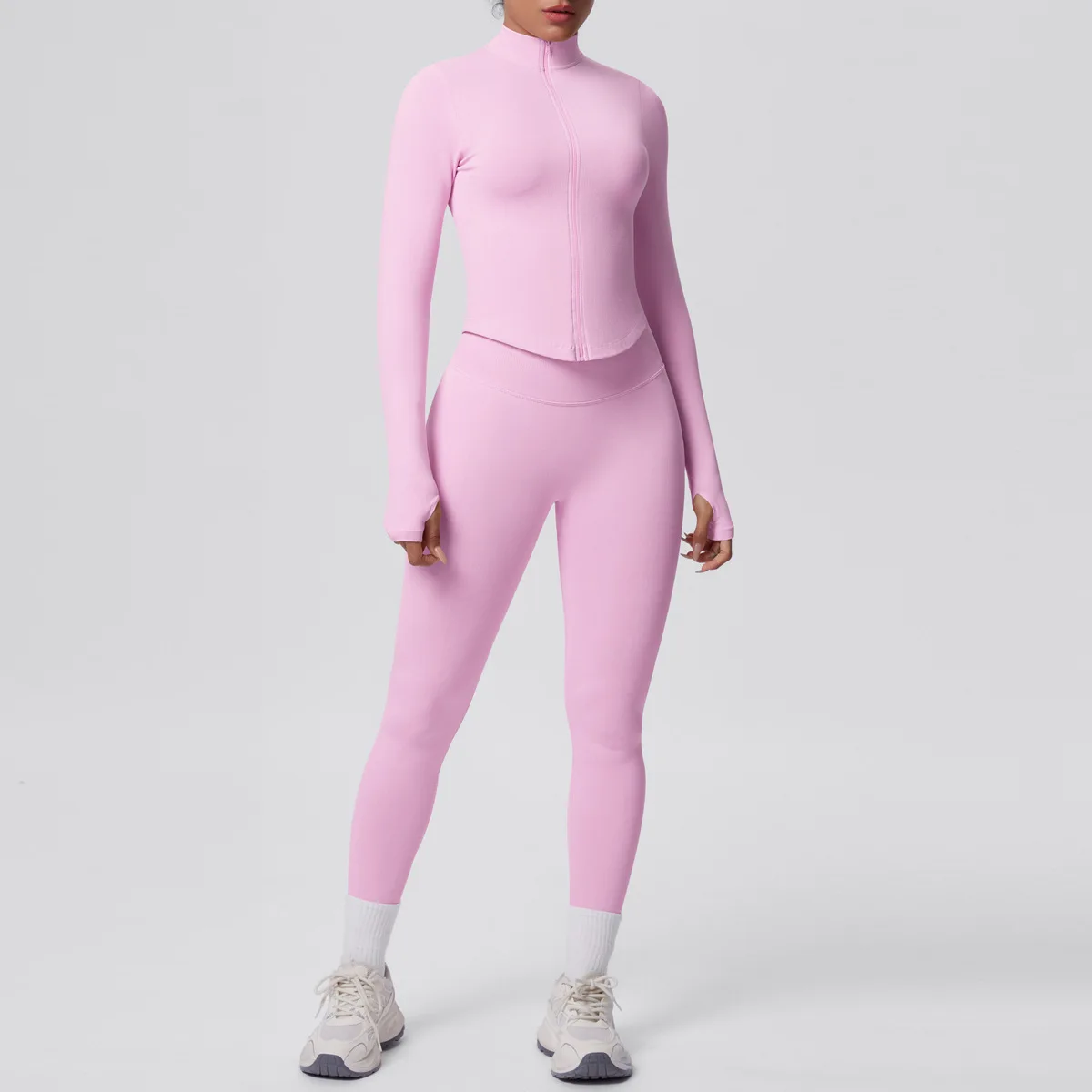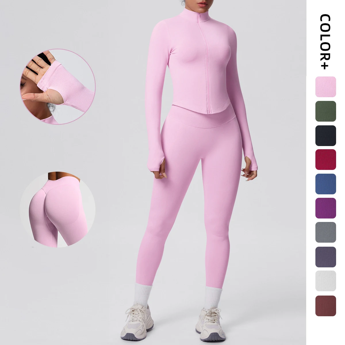 Women's High Quality Buttery Soft Popular Women Long Sleeve Gym Training Fitness Outer Wear Jackets Yoga Leggings Set