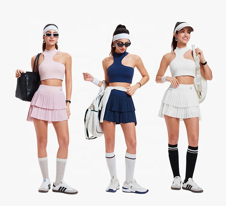 YISHENHON Summer Ladies Custom Logo Sport Skirt High Quality Fitness Apparel Breathable Sport Running V Cross Tennis Skirts