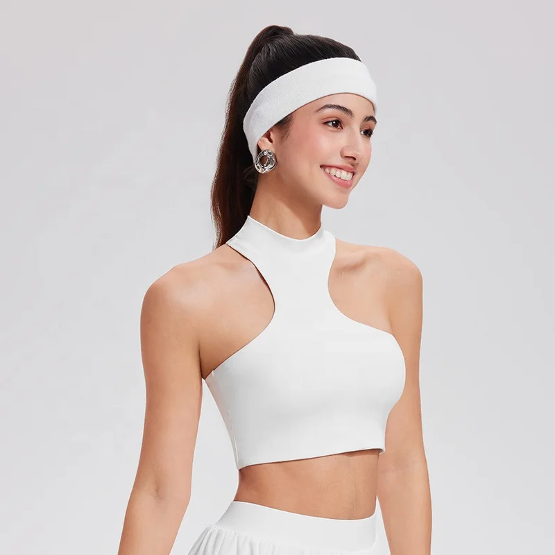 Women's Nylon Solid S-XXXL Quick Dry Breathable Seamless Irregular Casual Sports Fitness Shockproof Tank Top