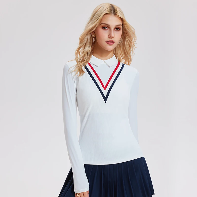 High Quality Pickleball Tennis Athletic Sport Top Autumn Long Sleeve Women False-Two-Piece Rugby Polo Shirt