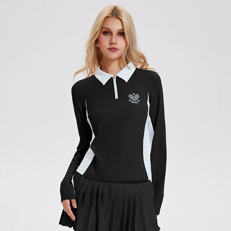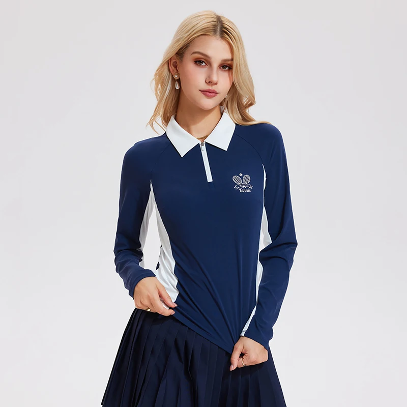 Sports Athletic Fitness 1/4 Zipper Long Sleeve Polo Collar Quick Dry Workout Gym Shirts Tennis Printed Long Sleeved Shirt