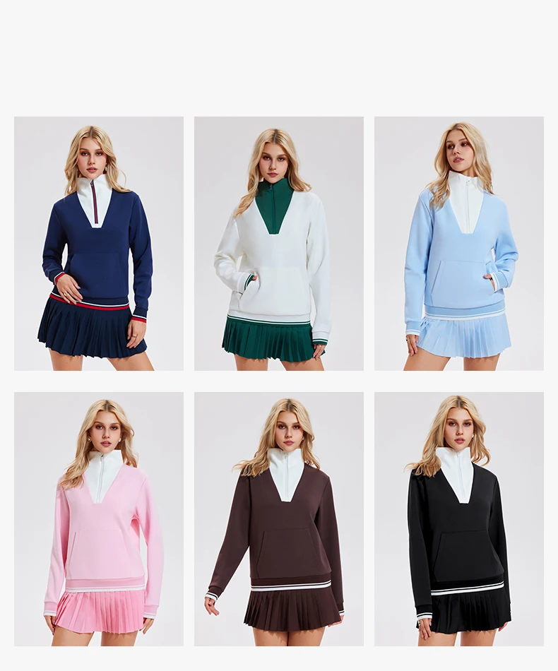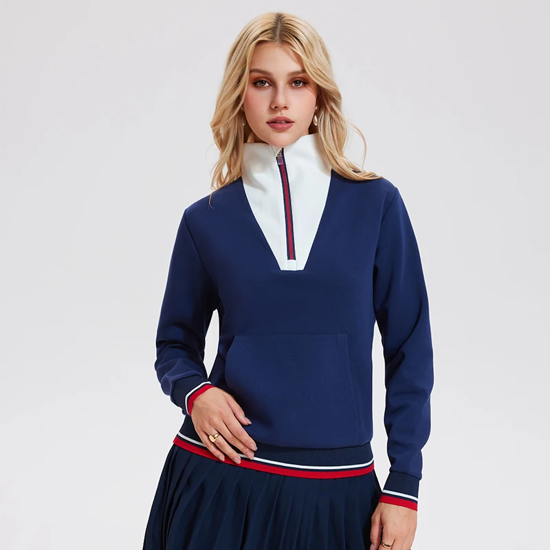 Custom Spring New Stand Neck 1/4 Zipper Knitted Sweater Fashion Casual Lapel Pullover Tennis Womens Tops