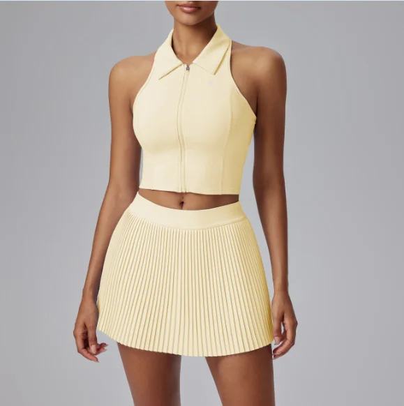 Tennis Two Pieces Set Sports Fitness Skirt with Pocket and Shorts Outfit Sleeveless Tank Tops Pickleball Golf Wear