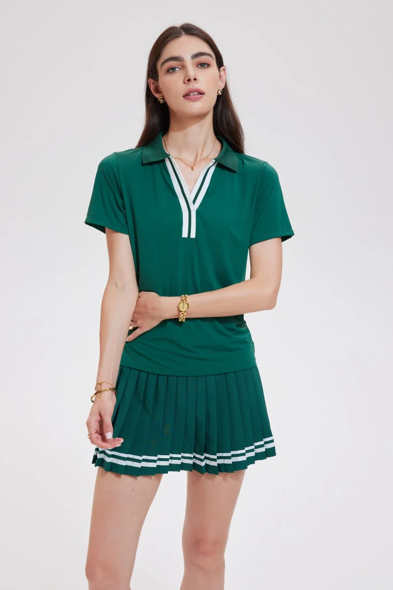 High Quality Sports Breathable Quick Dry Women's Tennis Wear Short Sleeve V-Neck Women's Tennis Skirt Set