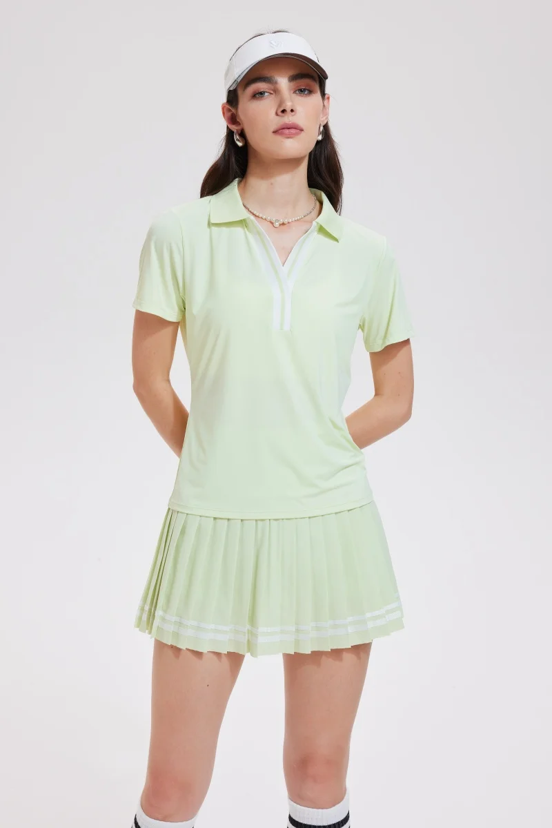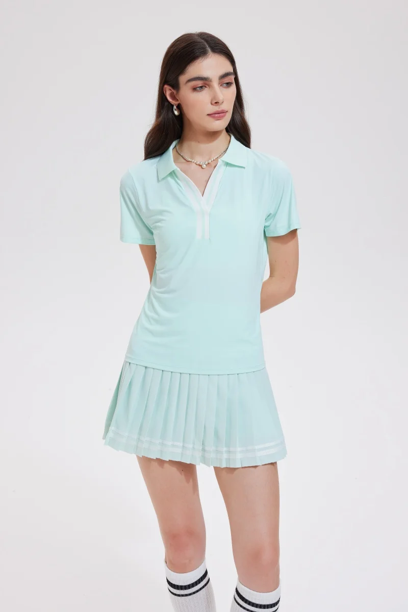 Golf Tennis Casual 2 Pieces Sports Sets V Neck Polo Short Sleeve and High Waist Pleated Skirt Sets Badminton Fitness Wear