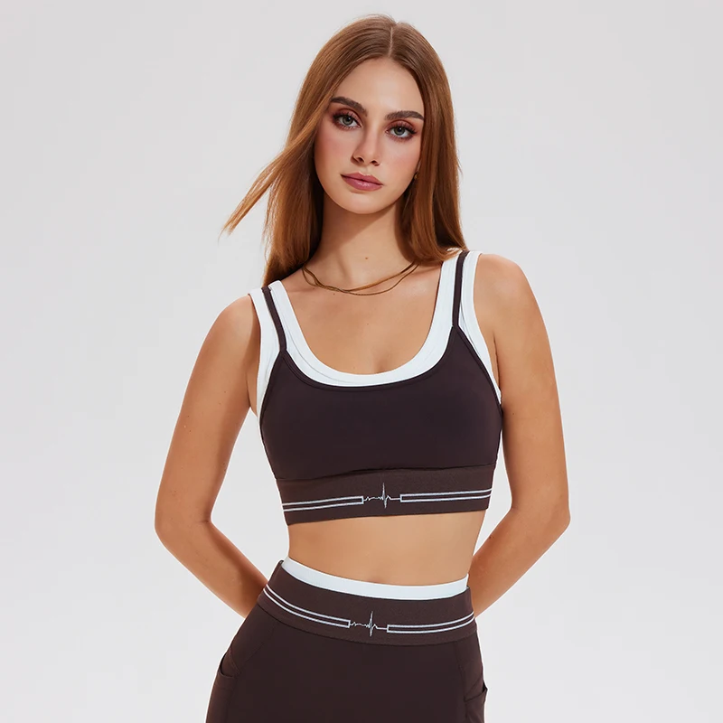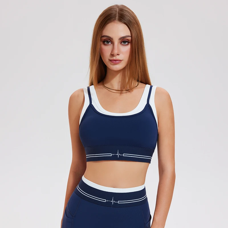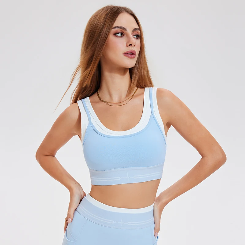 Naked Fake-Two-Piece Sports Underwear Thread Contrast Yoga Bra Running Fitness Sports Underwear