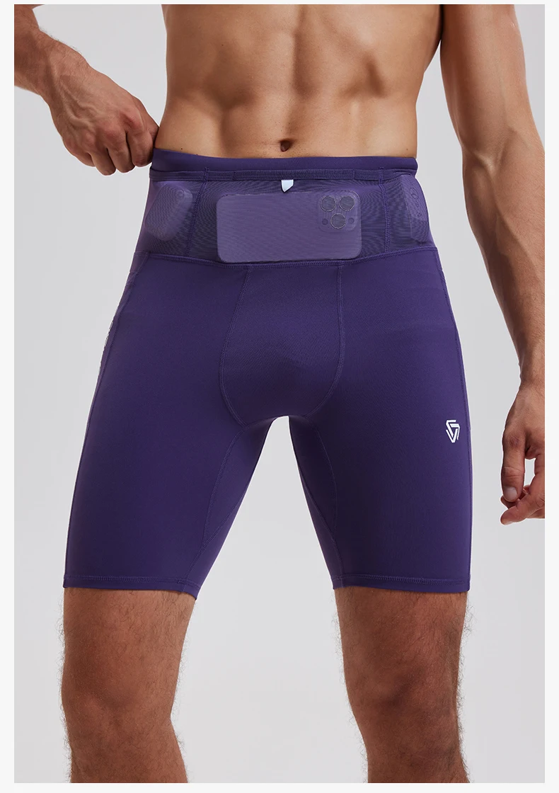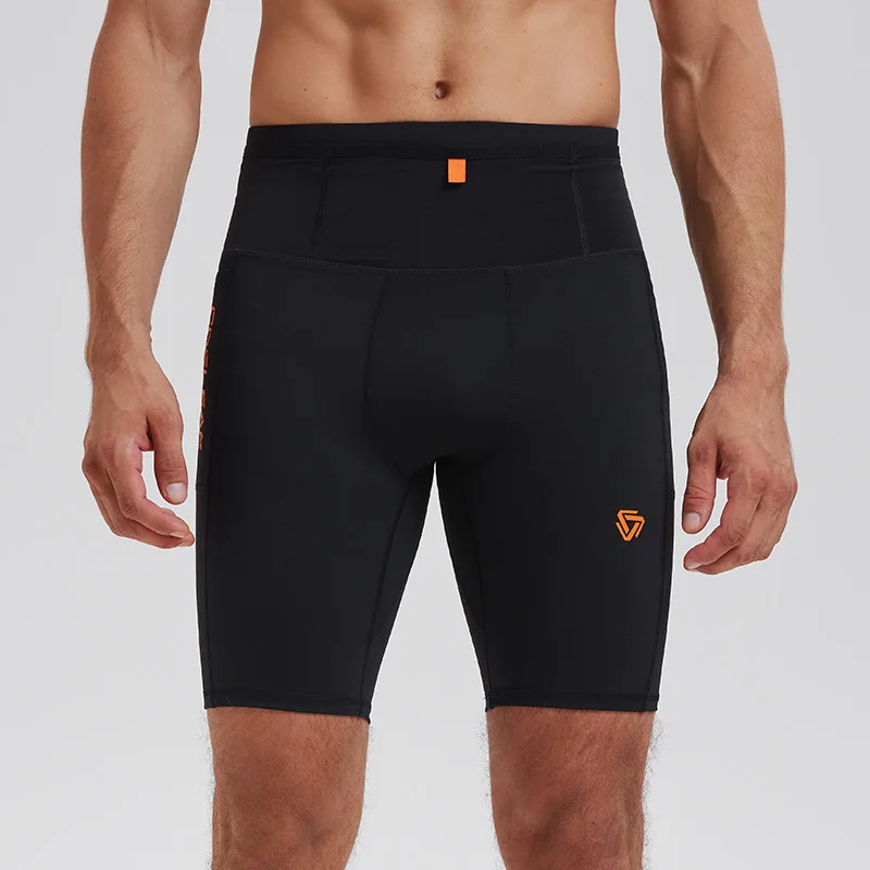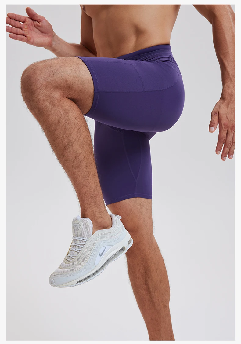 Men's Gym Tight Leggings Workout Shorts 2 in 1 Sports Spandex Nylon Elastic Shorts Three-Quarter Leggings Pants