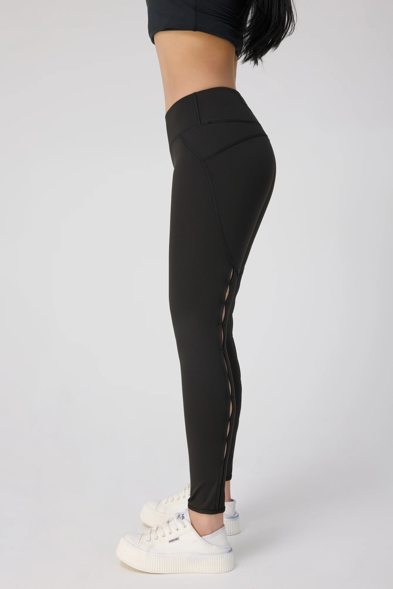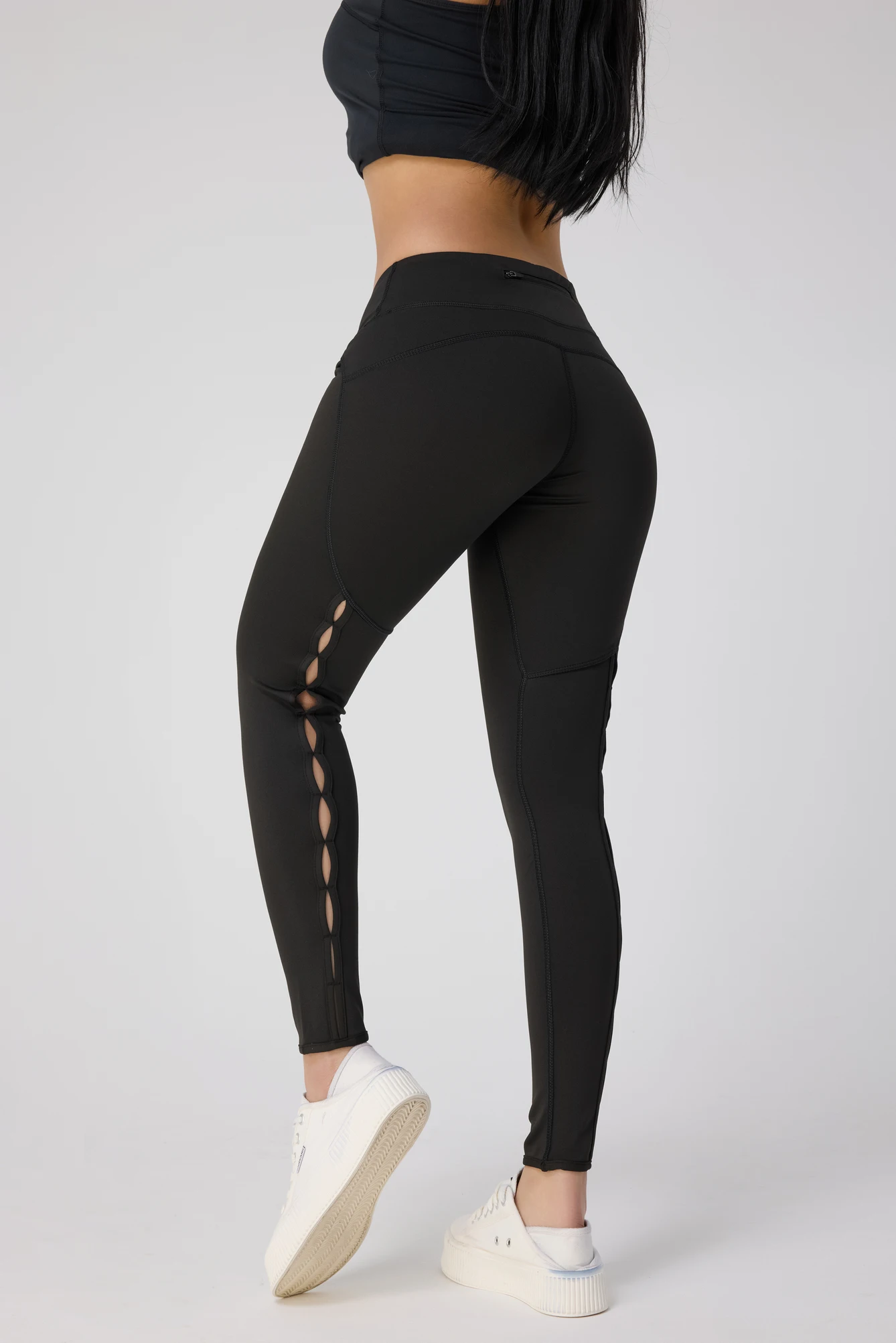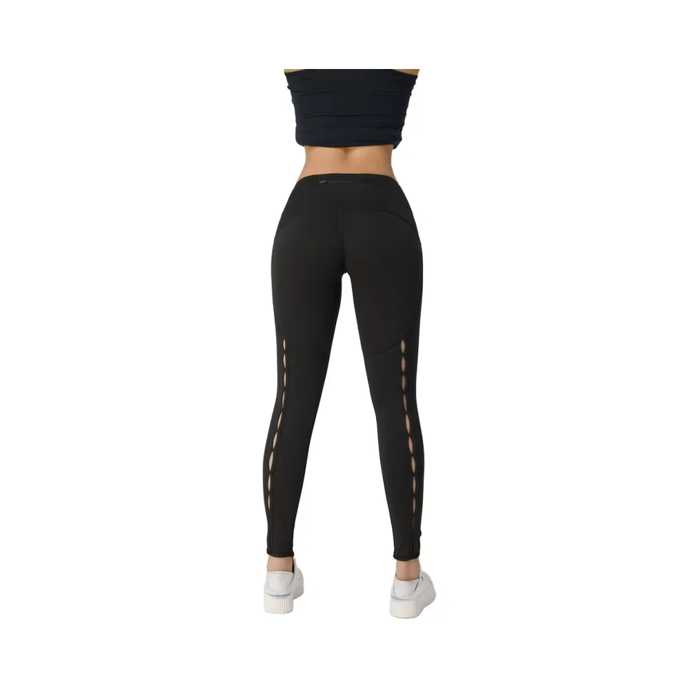 High Quality Women's Gym Yoga Pants with Elastic Waist Quick-Drying and Breathable for Fitness Black Perforated Yoga Pants