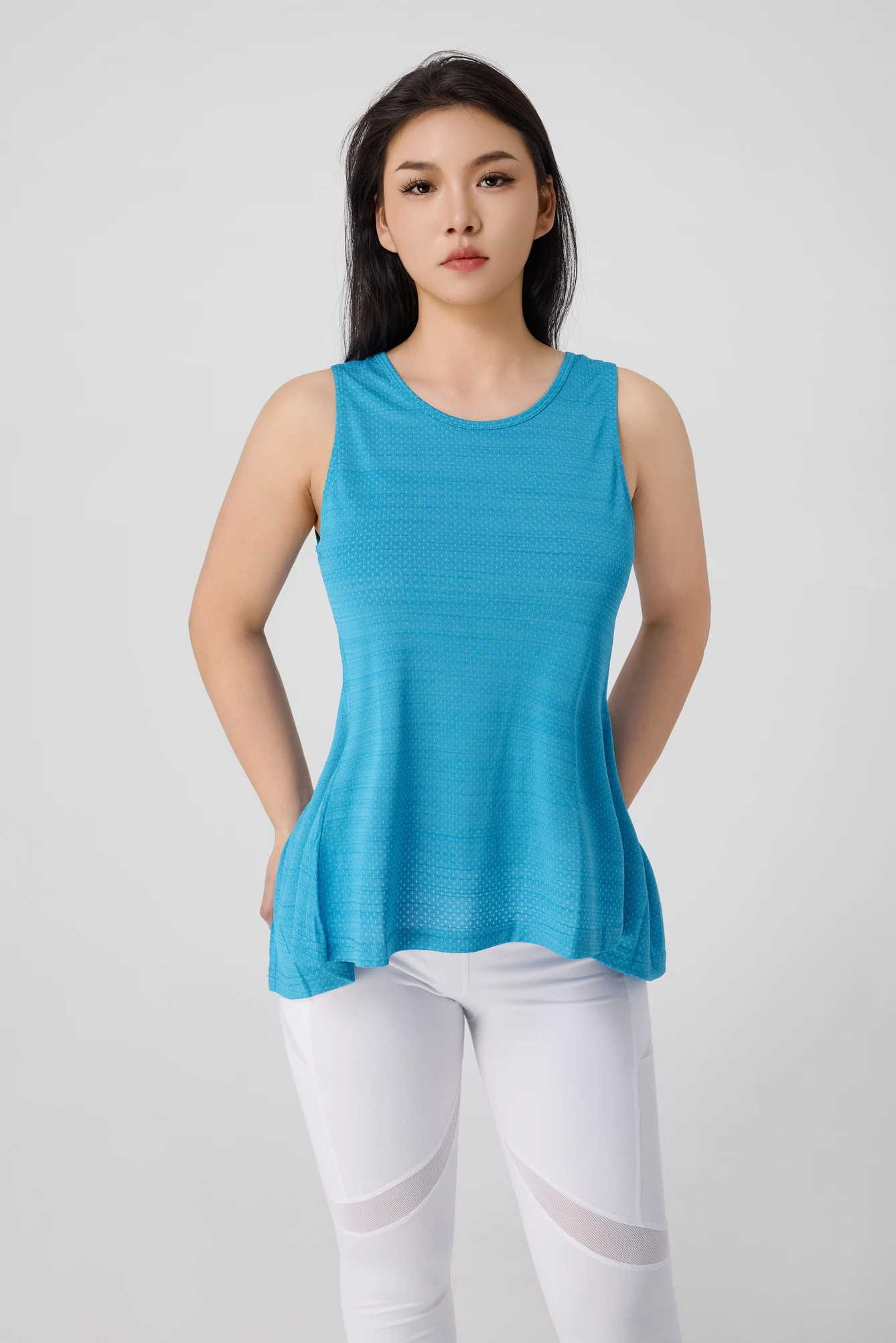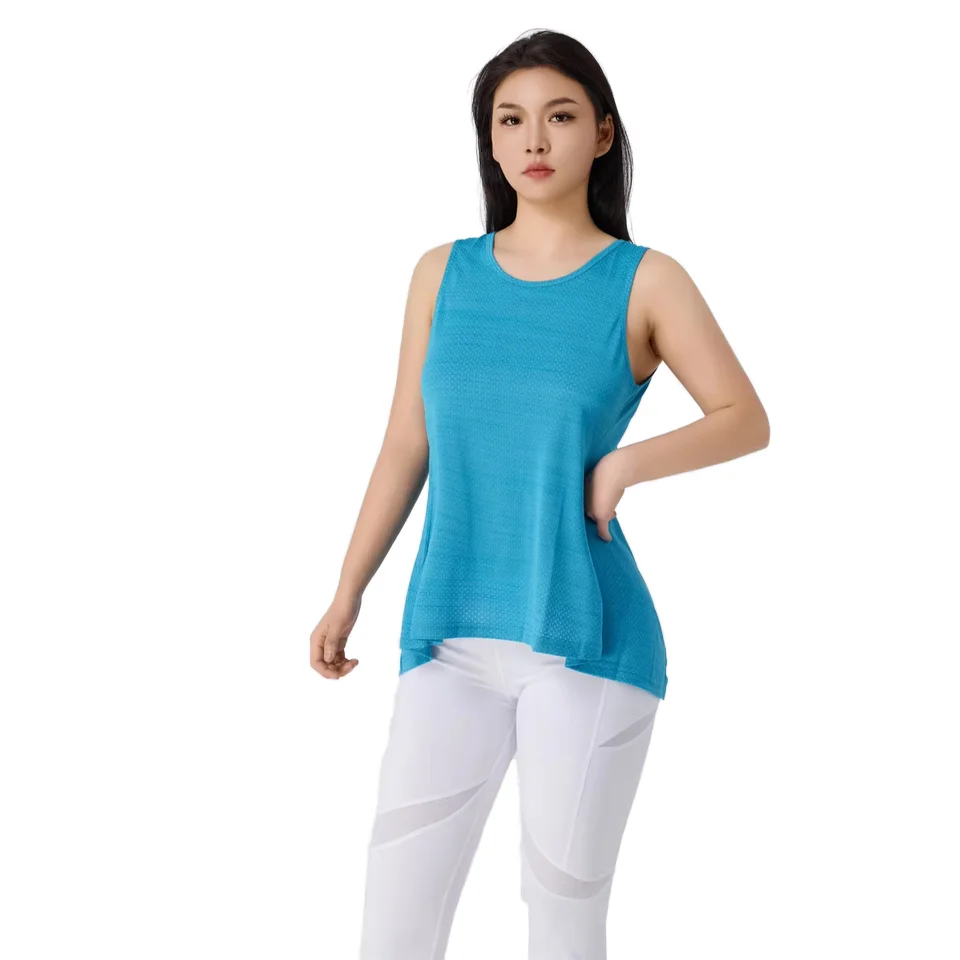 Summer Eco-Friendly Gym Workout Yoga Set Backless Two-Piece Suit Women Gym Blue Sleeveless Yoga Top Comfortable Yoga Wear