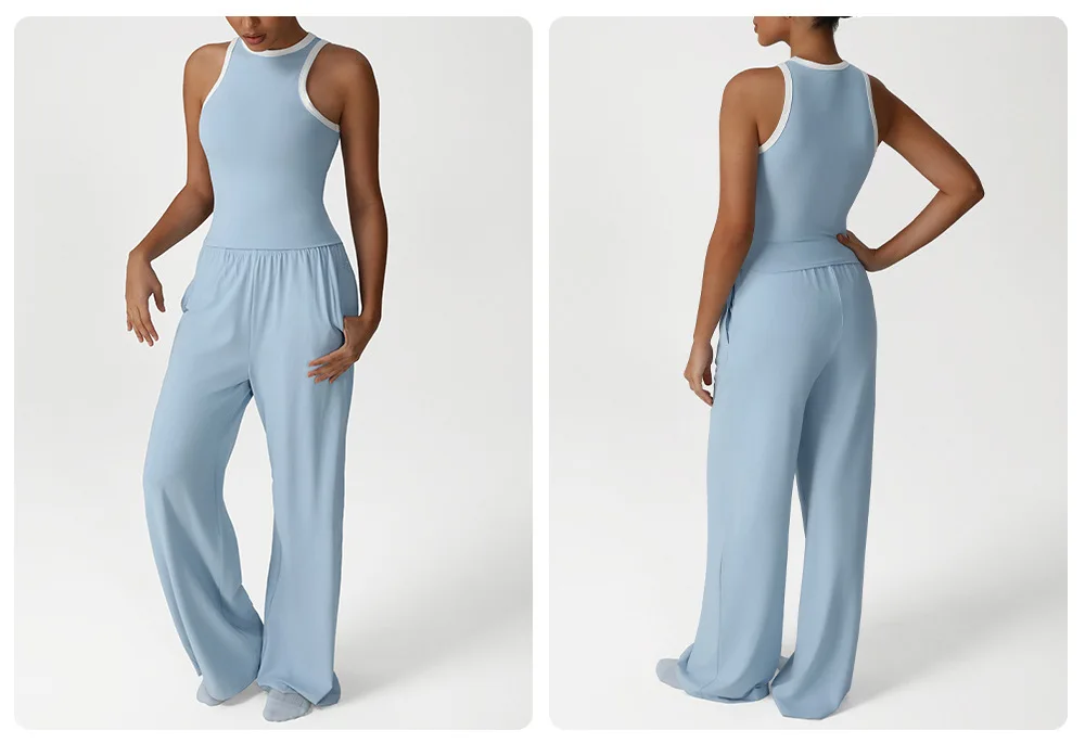 YISHENHON Recyclable Fabric Quick Dry Yoga V Waist Gym Leggings Running Workout Wide Leg Pants Flare Woman Sport Pants