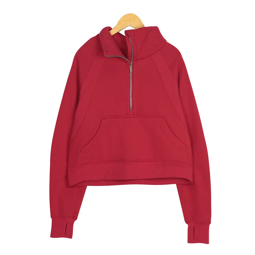 Women's Lulu Oversized Pullover Turtleneck Zipper Front Logo Hole Design Fleece Jacket Breathable Winter