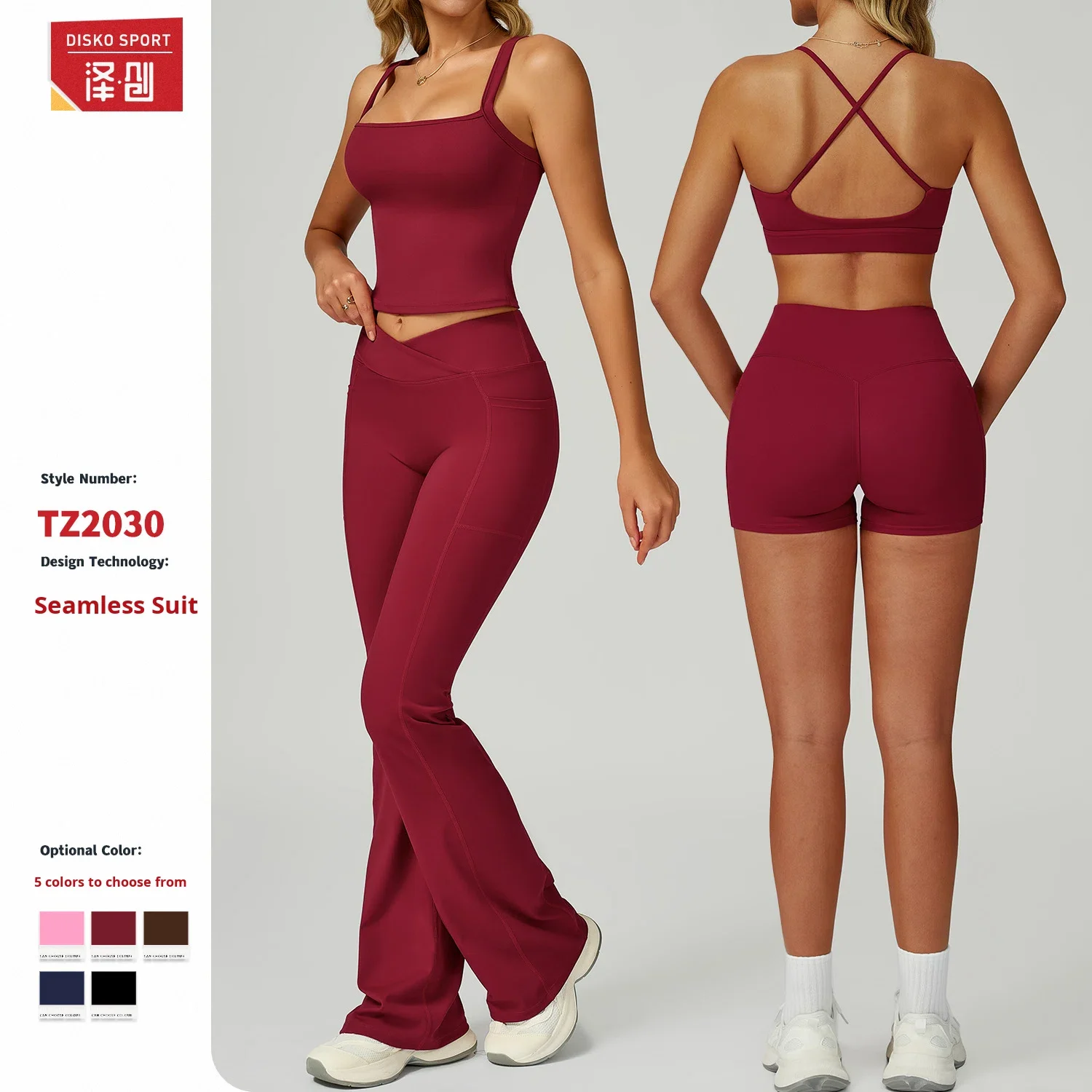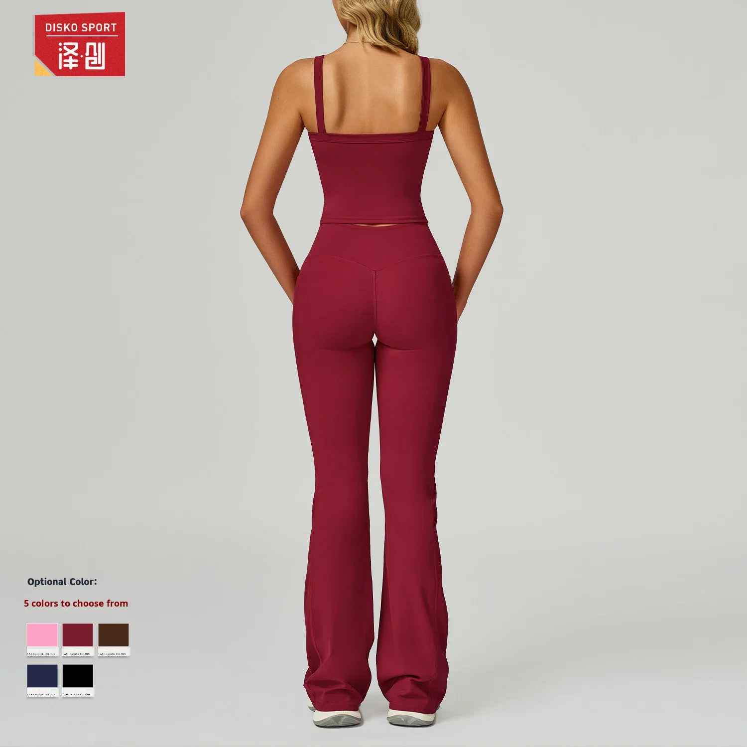 YISHENHON Recyclable Fabric Quick Dry Yoga V Waist Gym Leggings Running Workout Wide Leg Pants Flare Woman Sport Pants