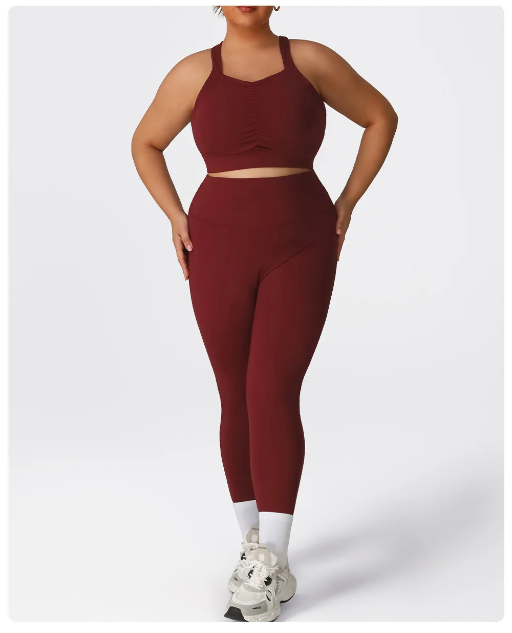Durable Stitching Breathable Lightweight Non-See-Through Curvy Sportswear Gym Outdoor Trendy Plus Size Workout Solid Front
