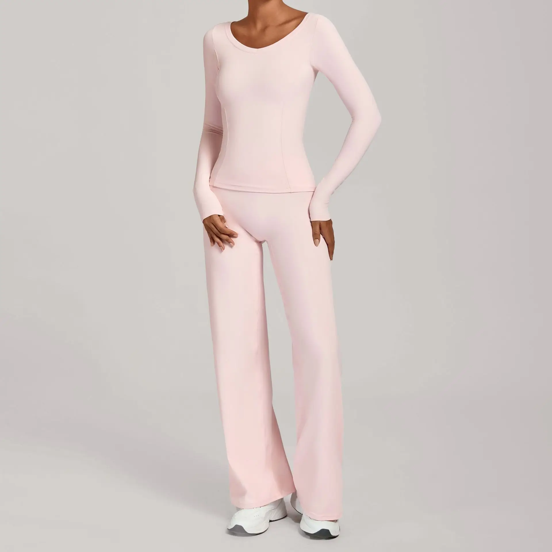 OEM Autumn/Winter Warm Tight Sport Outfit Women High Elasticity High Waist Speed Dry Running Long Sleeve Yoga Set